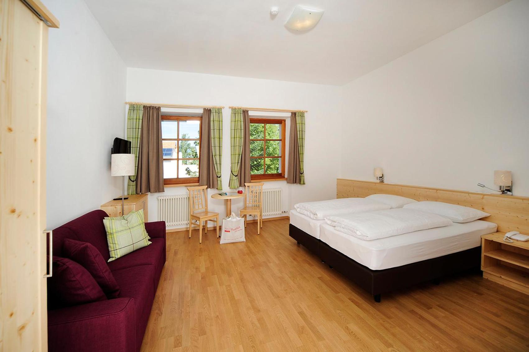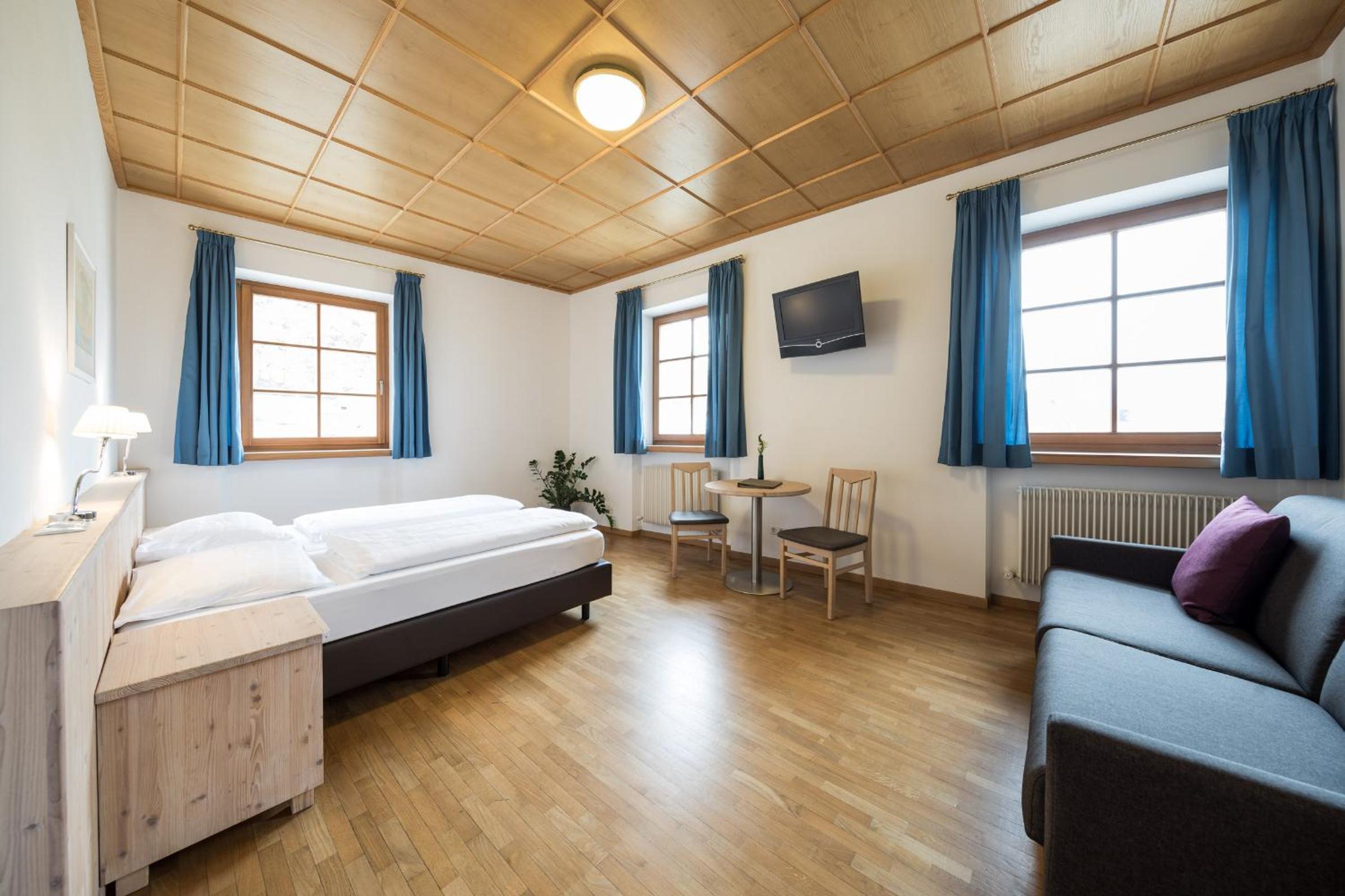 Relax in the comfort of our rooms featuring wooden furnishings, parquet floors, and modern amenities like LCD satellite TV.
