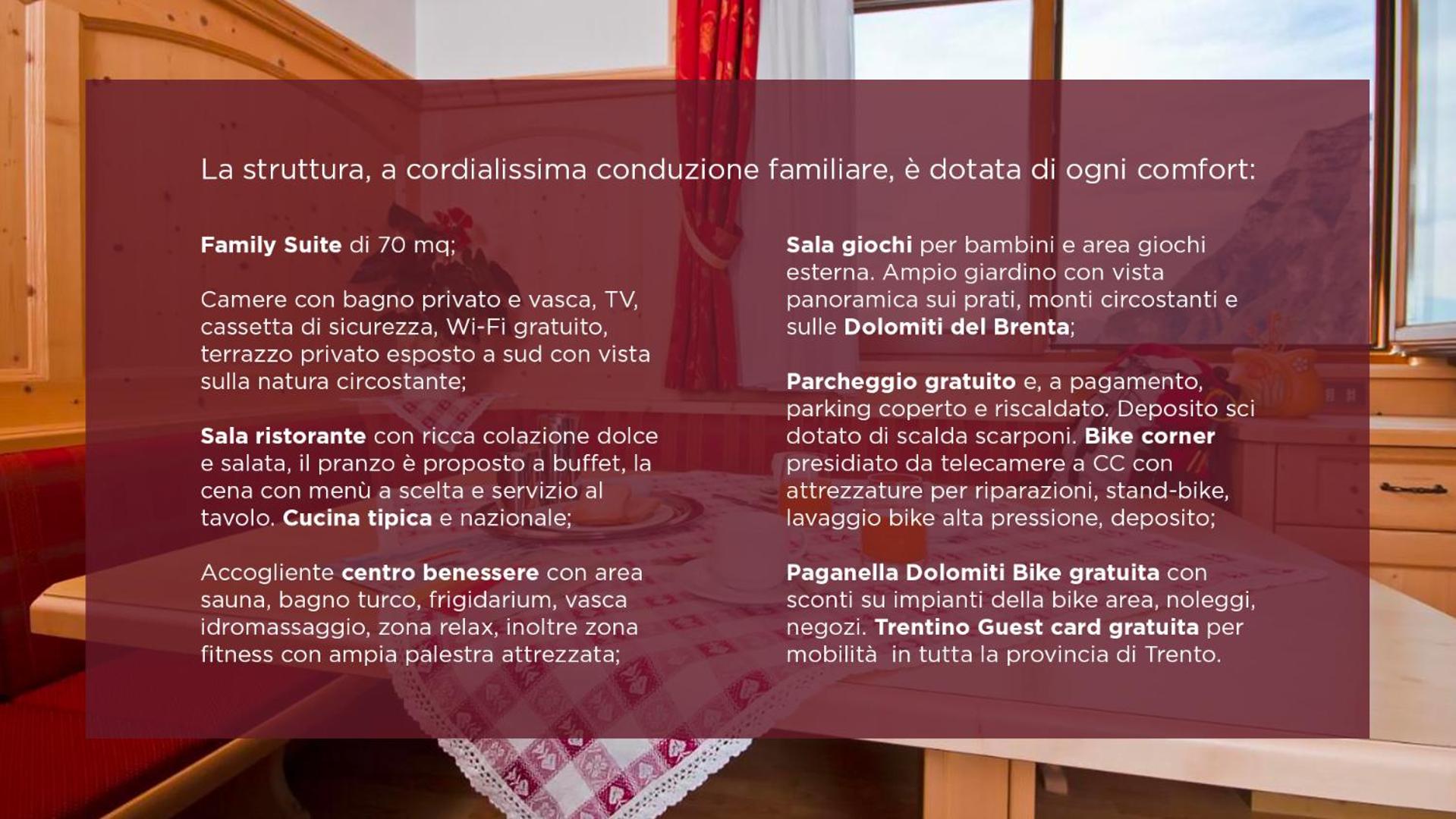L'accoglienza dello staff ti fa sentire a casa, ottima gestione di colazione e cena con un servizio ottimo. Buona l'attenzione verso i più piccoli con spazio dedicato con tanti giochi