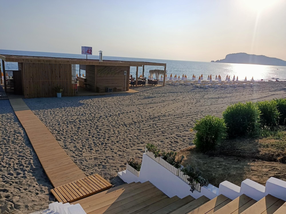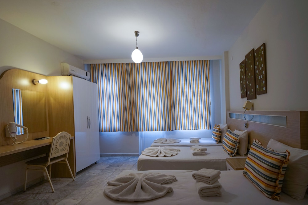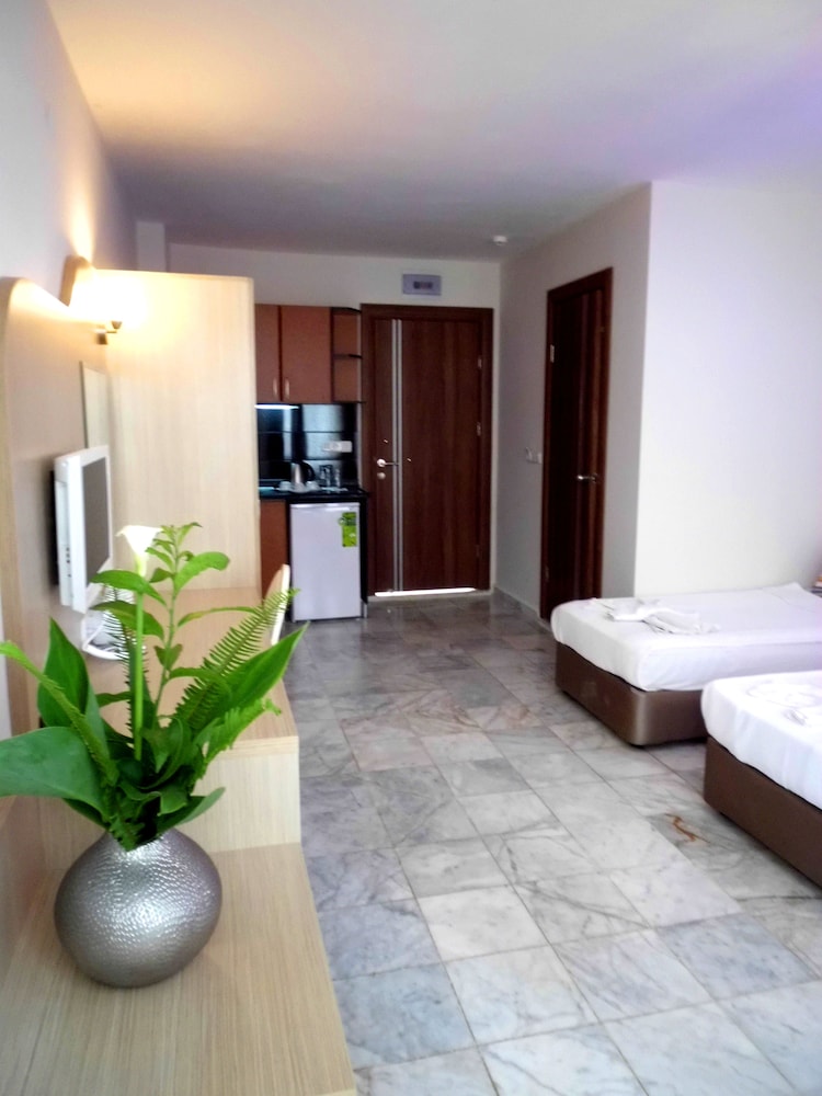 Otel konumu itibariye oldukça iyi. Hem plaja yürüyerek 4-5 dk. hem de merkeze giden toplu taşıma araçları hemen otelin önünden geçiyor. Benim için bu çok önemli bir artı.