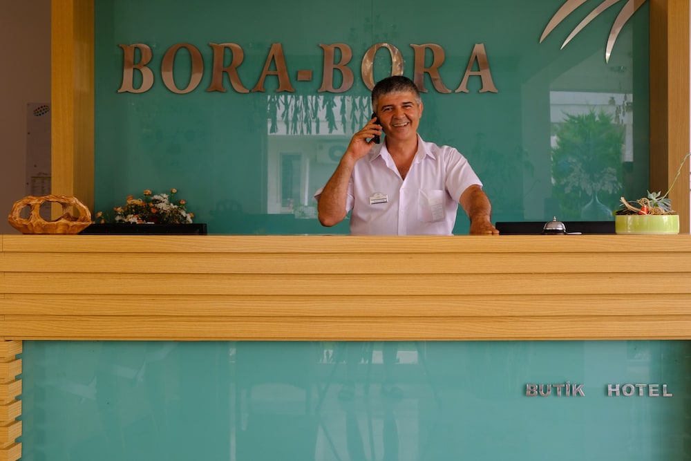 Enjoy the outdoor pool and garden views at Bora Bora Butik Hotel.
