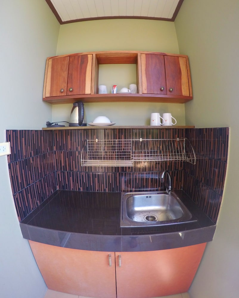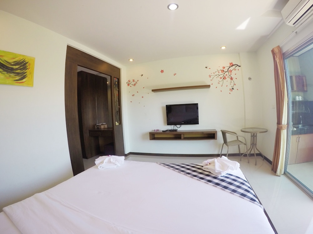 Camera spaziosa, condizionatore, frigo, microonde, nel terrazzino coperto lavello, sedie e tavolino. Ottima pulizia, personale gentilissimo, accoglienza e disponibilita', e sempre l:immancabile sorriso. Punto strategico sia per uscite in altre isole che per andare nelle spiagge piu' belle, kata, Karon, kata noi, rawai, navi han....