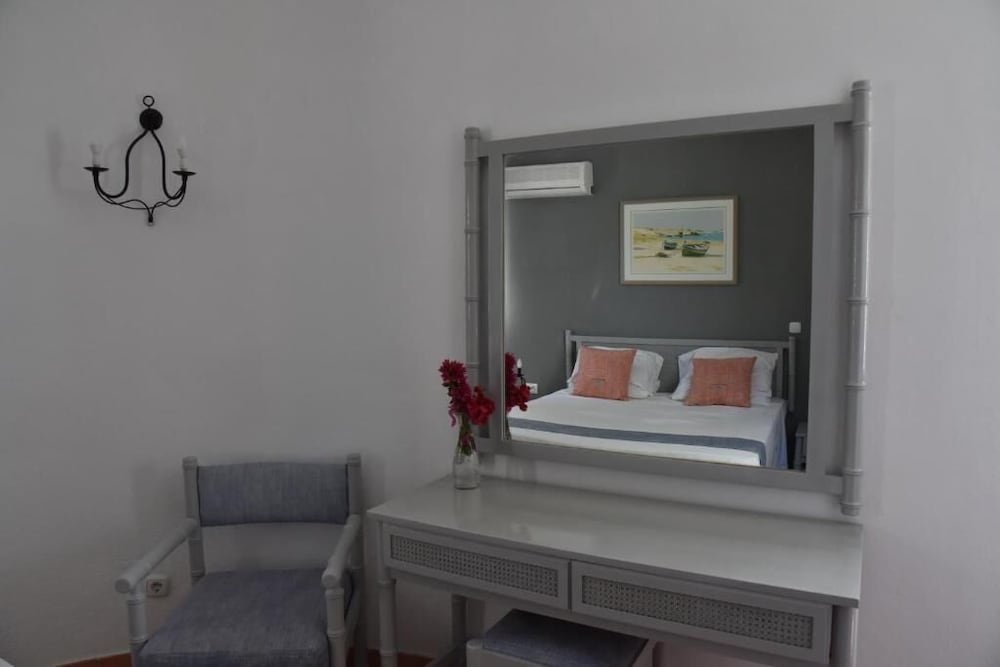 A beautiful small hotel. The staff were excellent, caring and friendly, coming to the port to meet us. The room was huge, with lovely materials, curtains and coverings that tied everything together. The bathroom was clean and there was a shower cabinet, a rarity in many isles hotels. Beautiful pool area, with padded loungers and spectacular views. Breakfast was excellent, wonderful coffee and amazing omelettes on demand! Honestly, all superb, highly recommended.