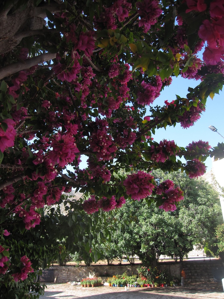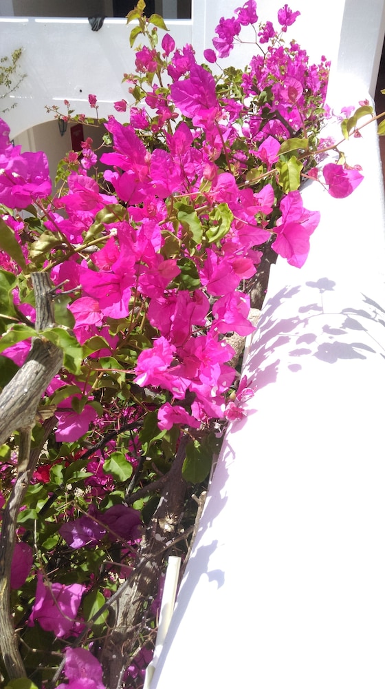 Amazing picturesque pool with bougainvillea growing up, all rooms look out onto this very Greek!