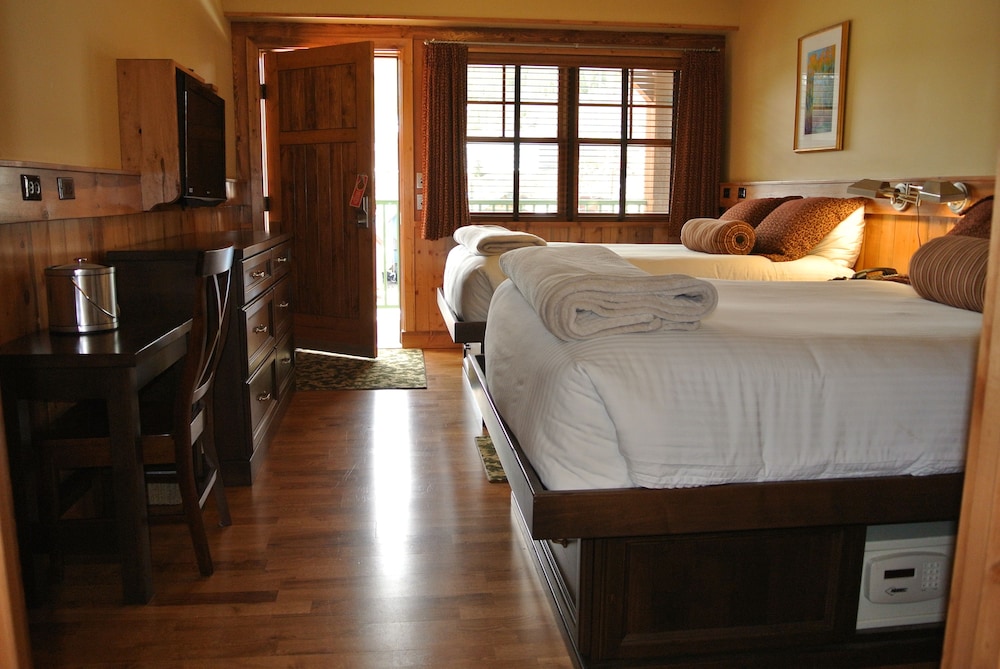The room was beautiful, with a mountain cabin atmosphere.