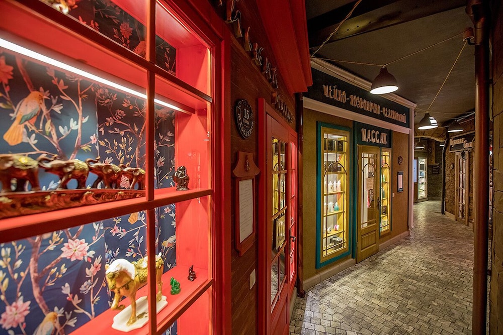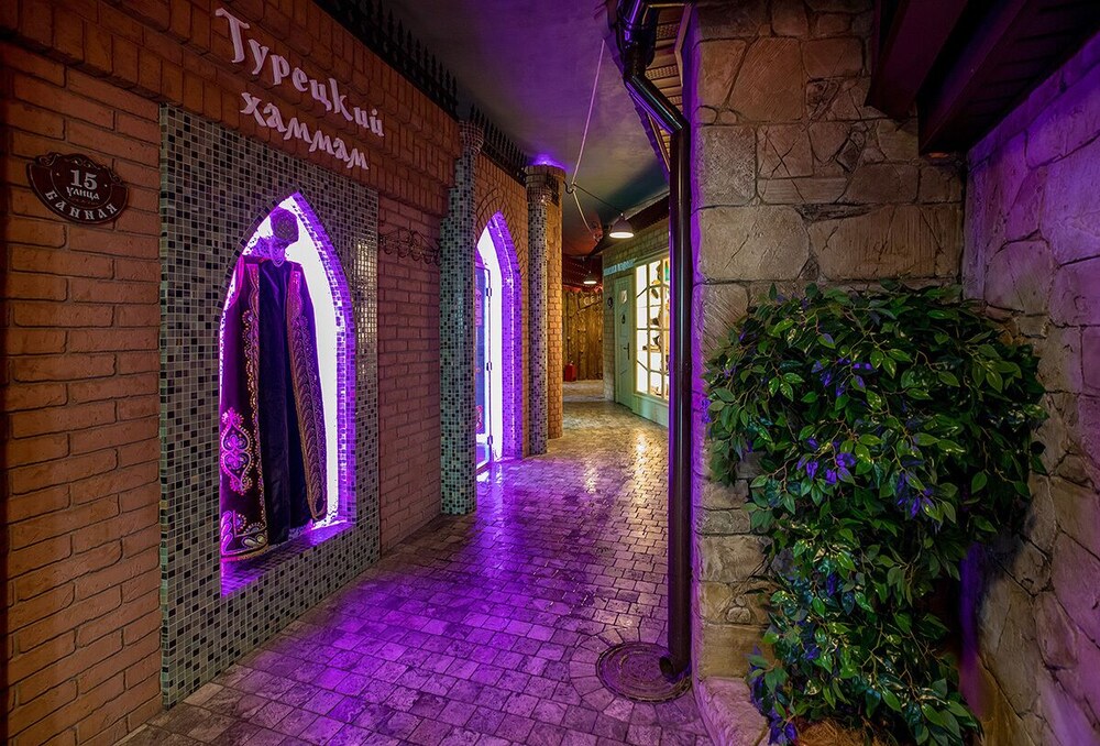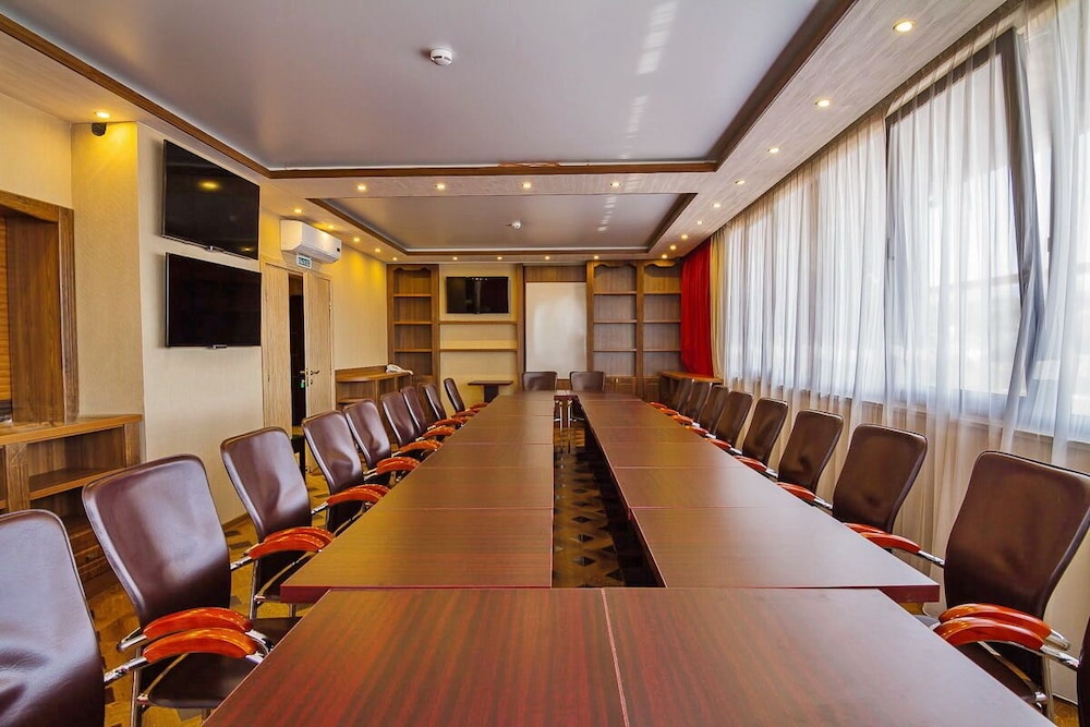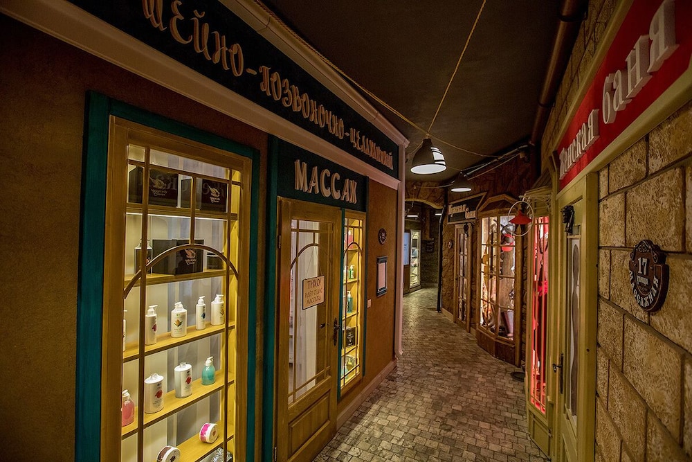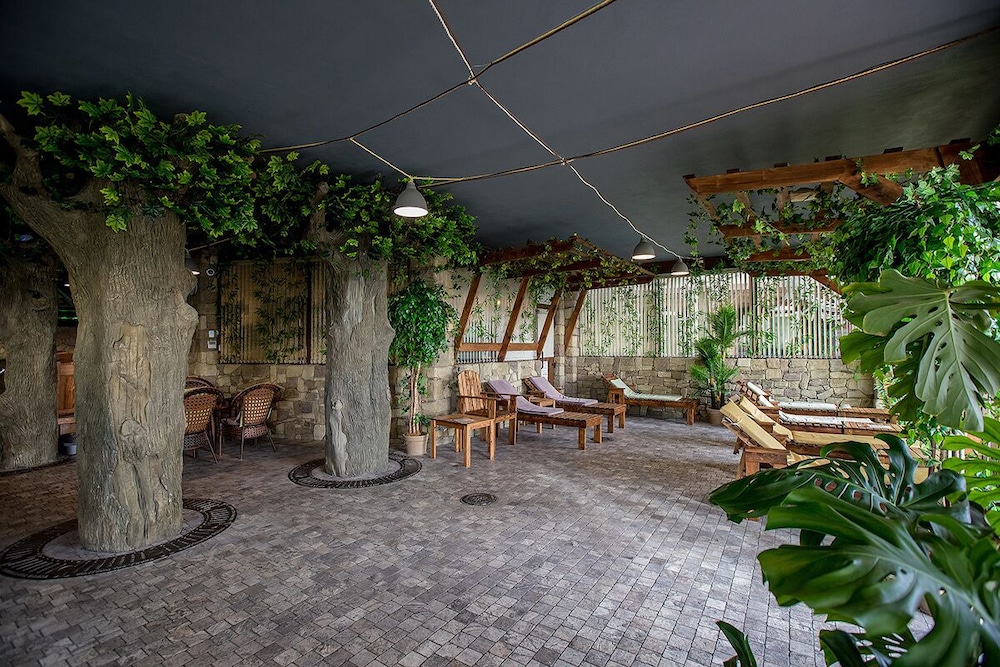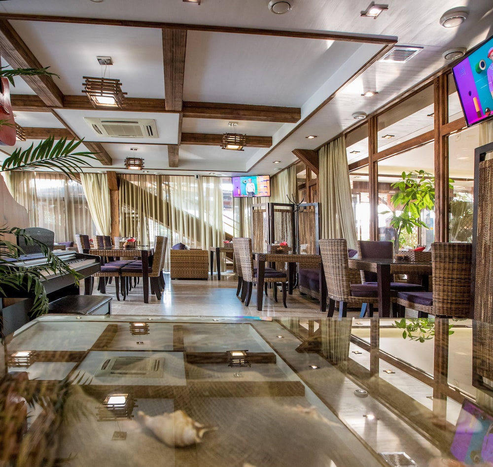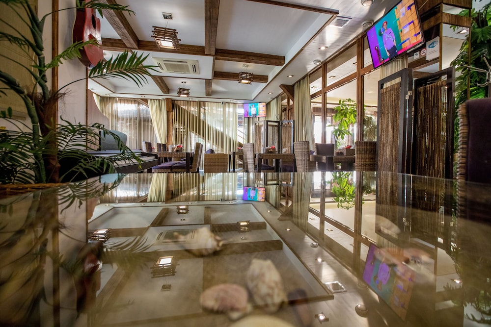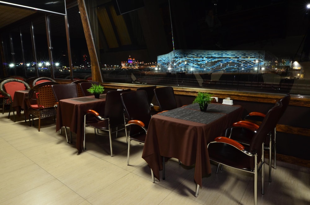 В гостинице имеется ресторан и спорт-бар. В ресторане хорошо кормят итальянской и кавказской едой и неплохо поят немецким пивом. Счет был в районе 1500-2000 рублей на двоих с алкоголем.