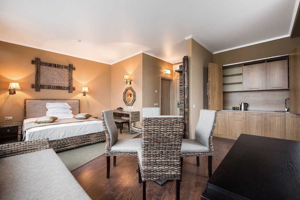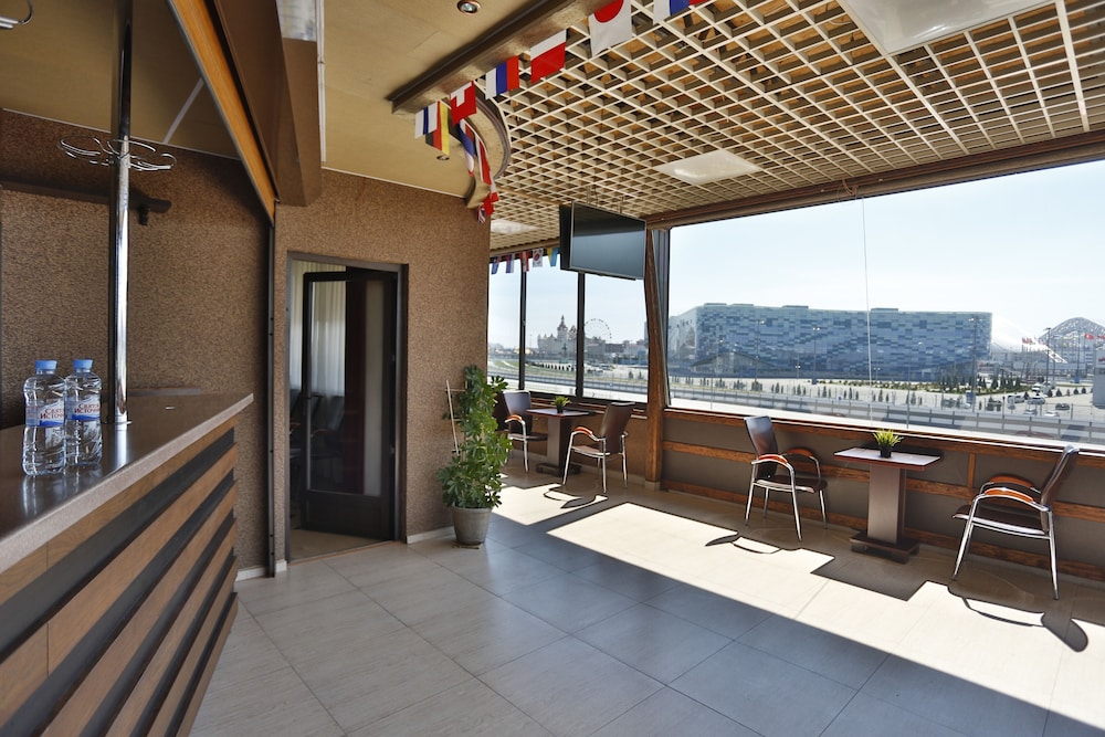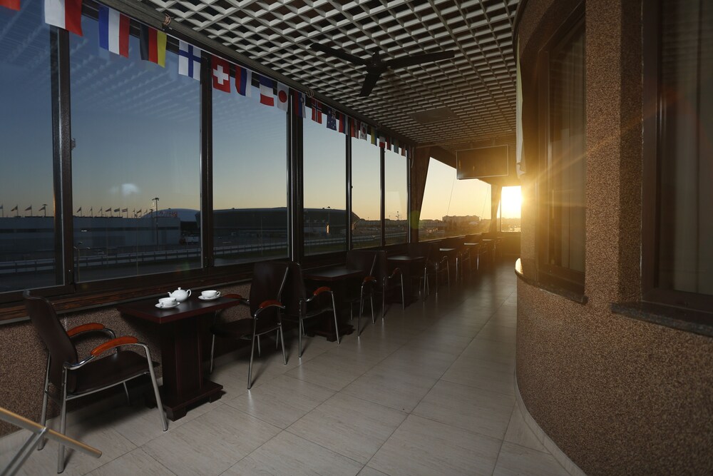 This hotel is about 45 min walk to main entrance to Sochi autodrom. The hotel rooms are basic-there are no tea/coffee making facilities, the air con does not go below 17degrees, so does not really cool the room, and the TV only has Russian channels. There is no menu in any language other than Russian, so you need a translation app.