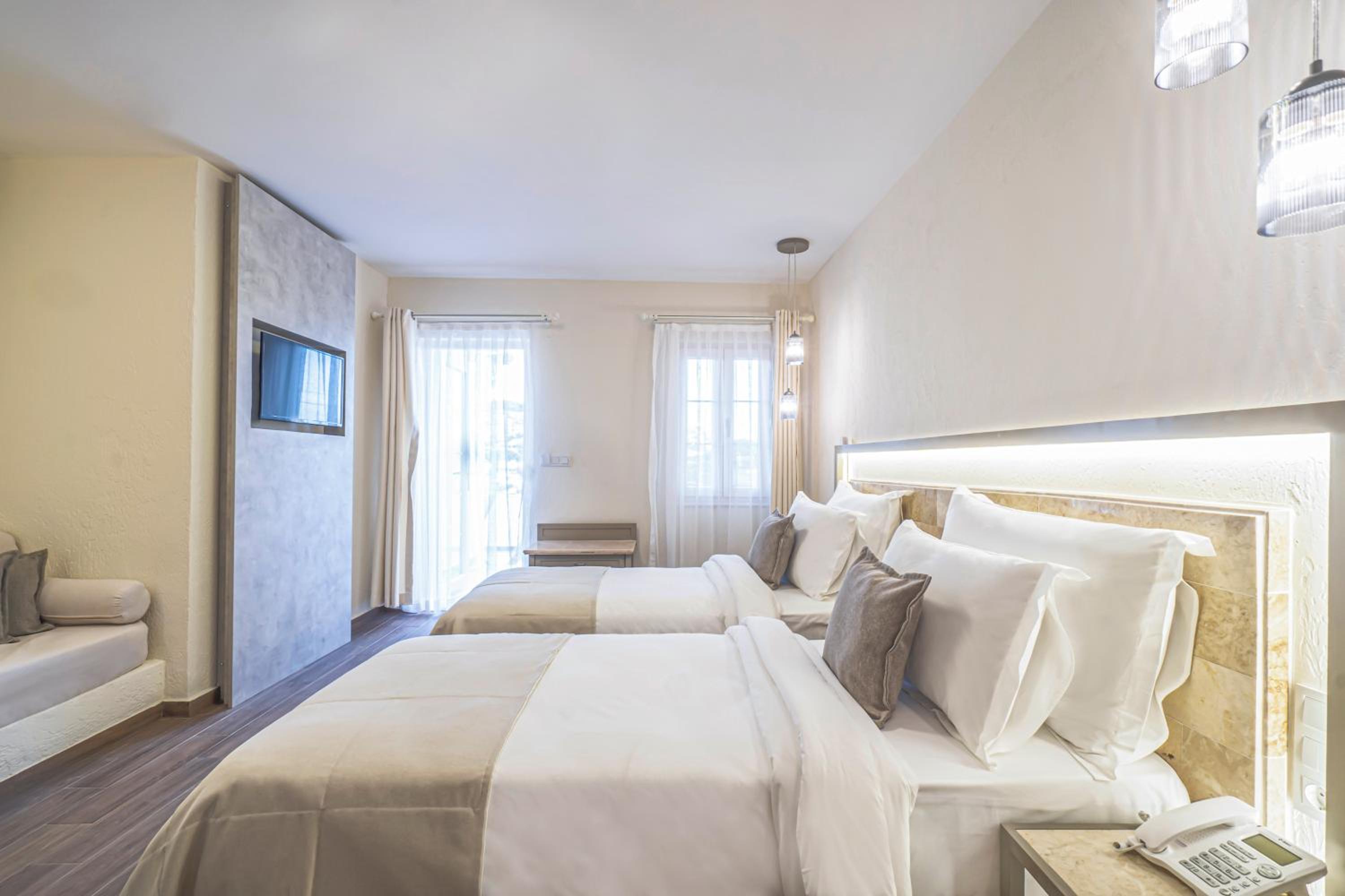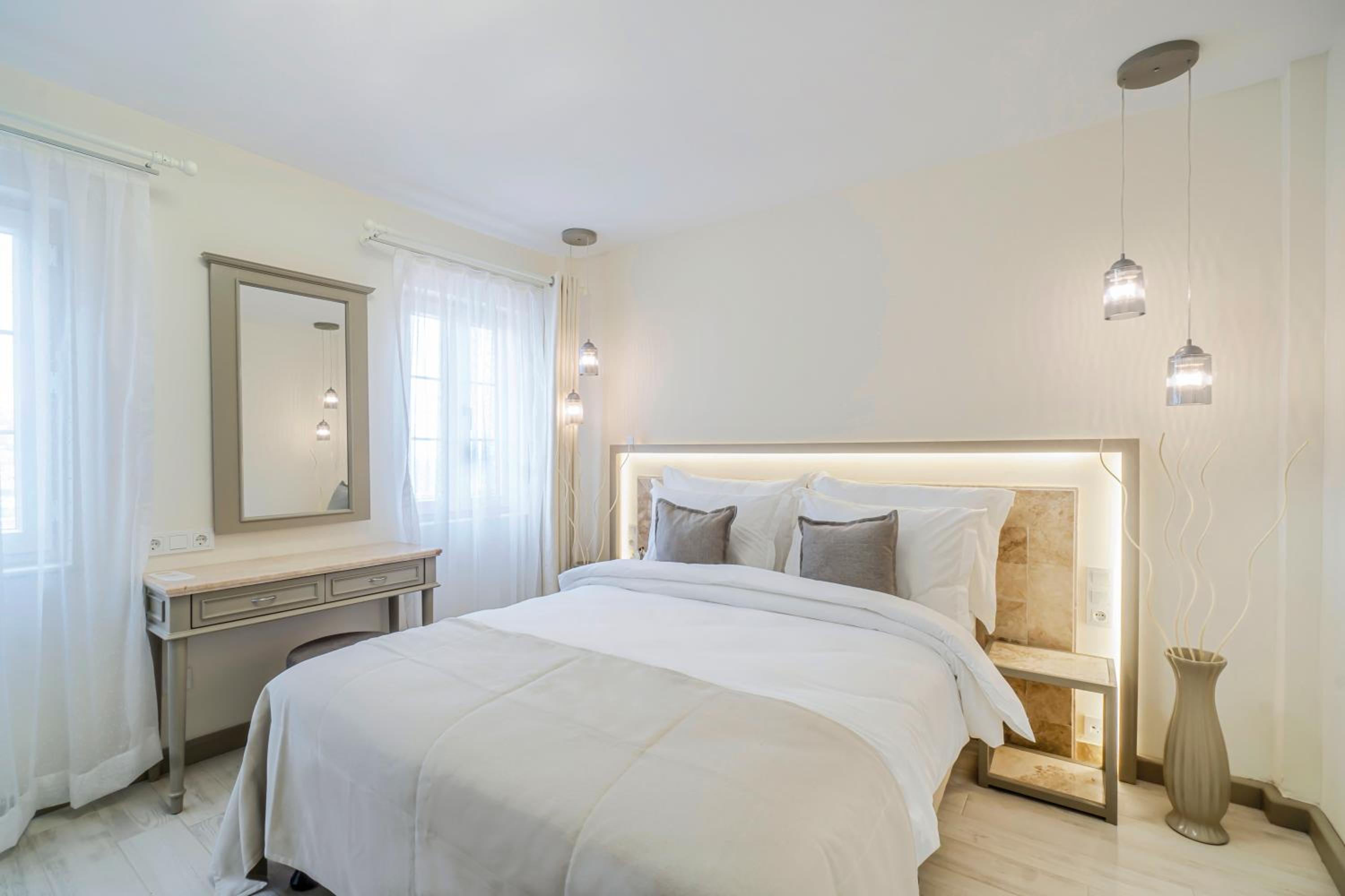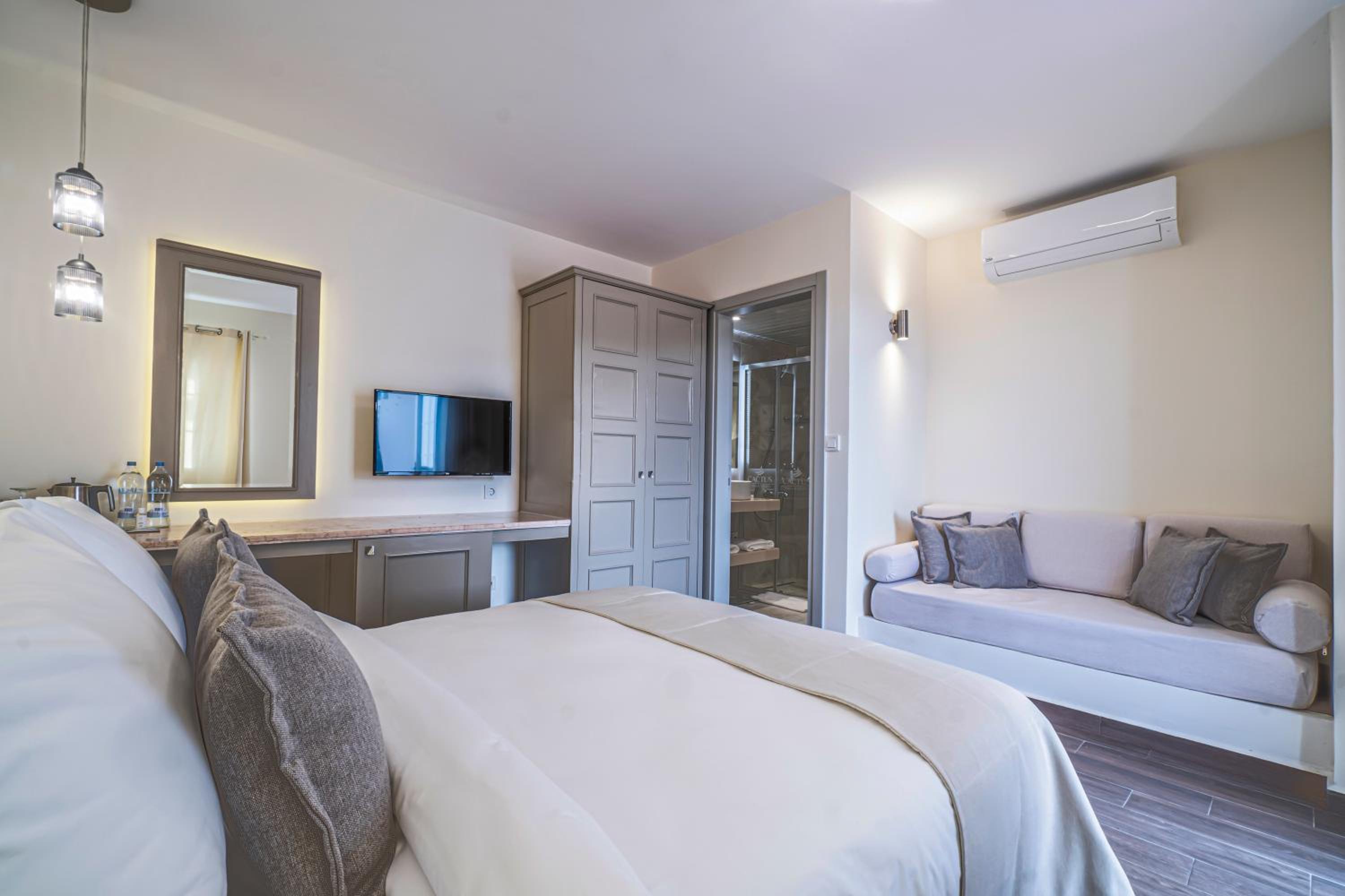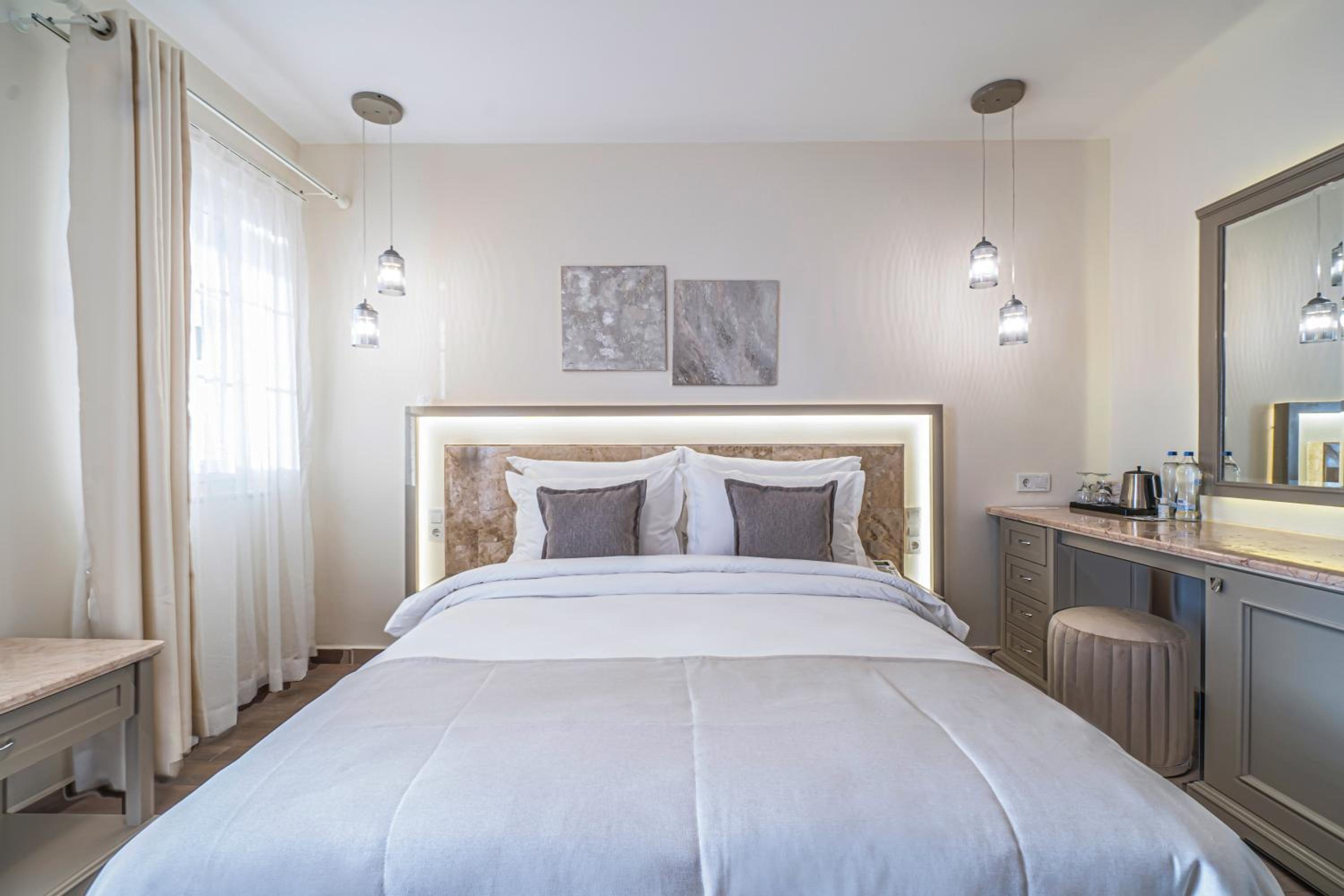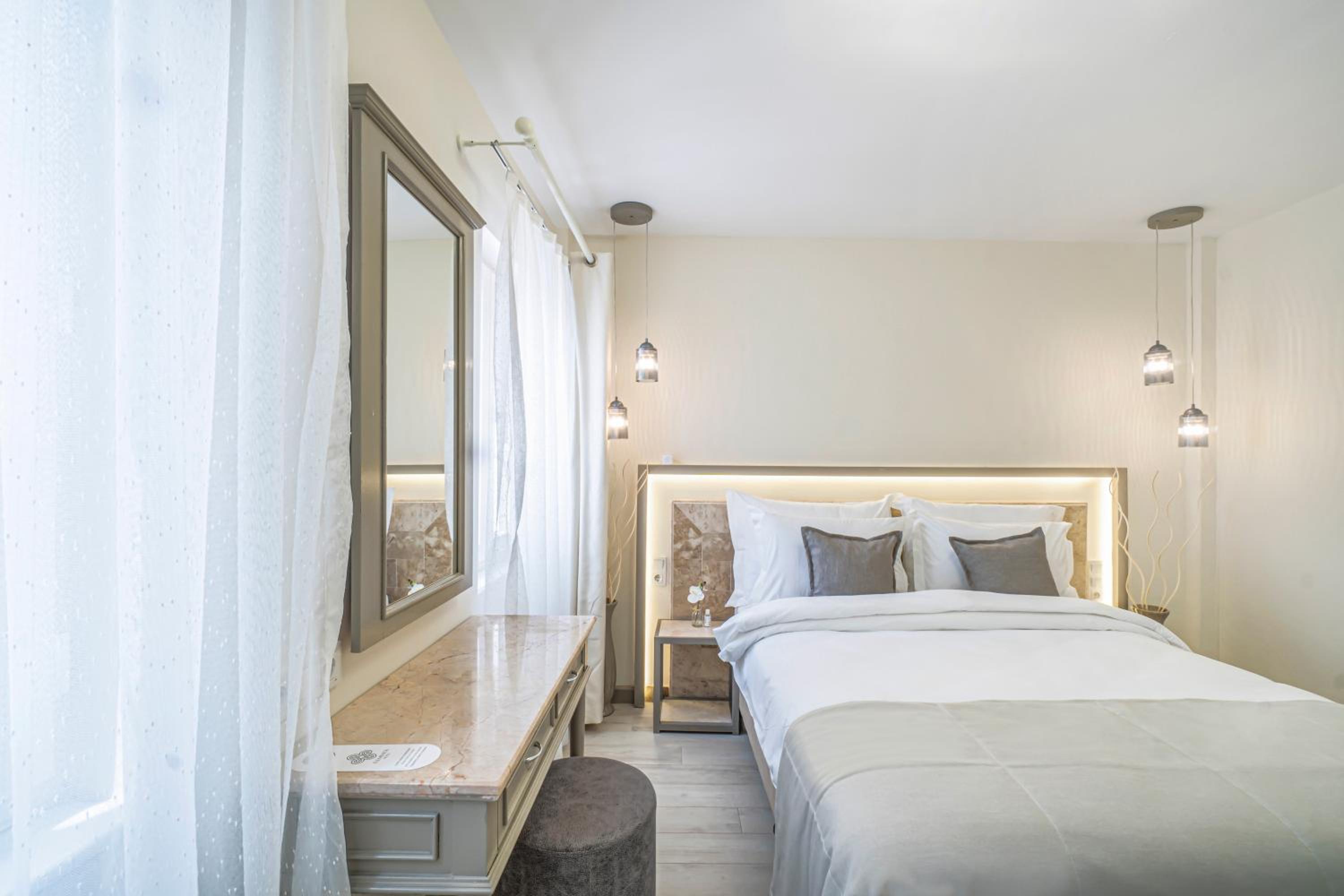 Elementa Boutique Hotel - Adults Only offers air-conditioned rooms with a satellite TV, minibar, and balcony. Each room is beautifully decorated, with some boasting stunning sea views.