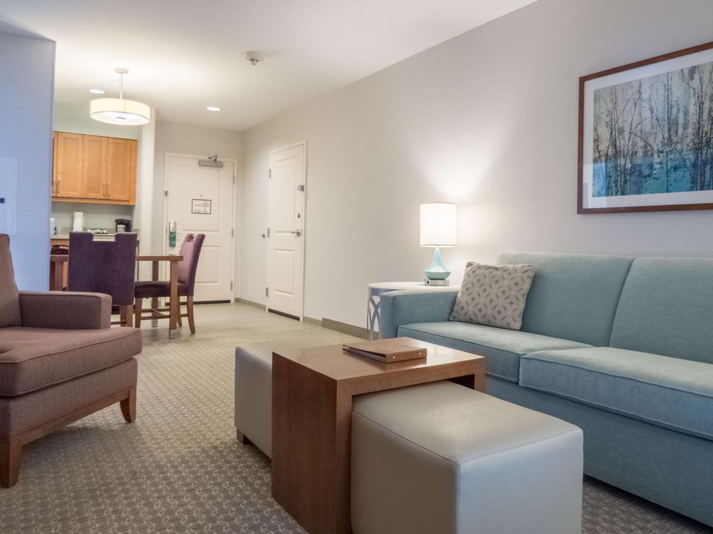Indulge in our indoor pool and fitness centre for a relaxing stay at Homewood Suites by Hilton Gateway Hills Nashua. Each room features a 42" flat-screen TV, fully equipped kitchen, and a cozy seating area with a sofa bed.