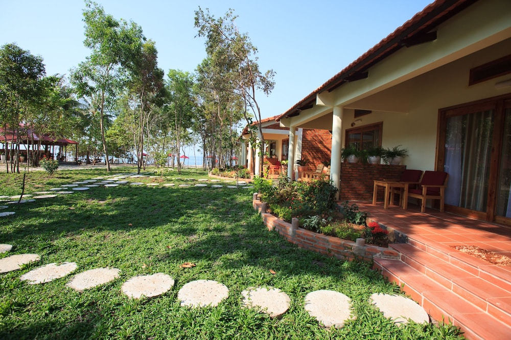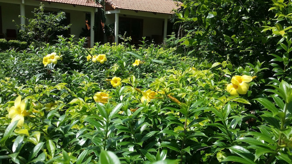 Outside is beautifully landscaped, jungle tropical feel but not at all overgrown, very well maintained. No garbage. Lots of places to quietly read and relax sun or shade. We had a motorbike which was nice option to drive along to Ganh dau for lunch a couple times and see some sights. The road from Airport is paved and great, but the lane into the strip of resorts on Vanh bau bay is a dirt path and is tricky. Husband loved that part the best.