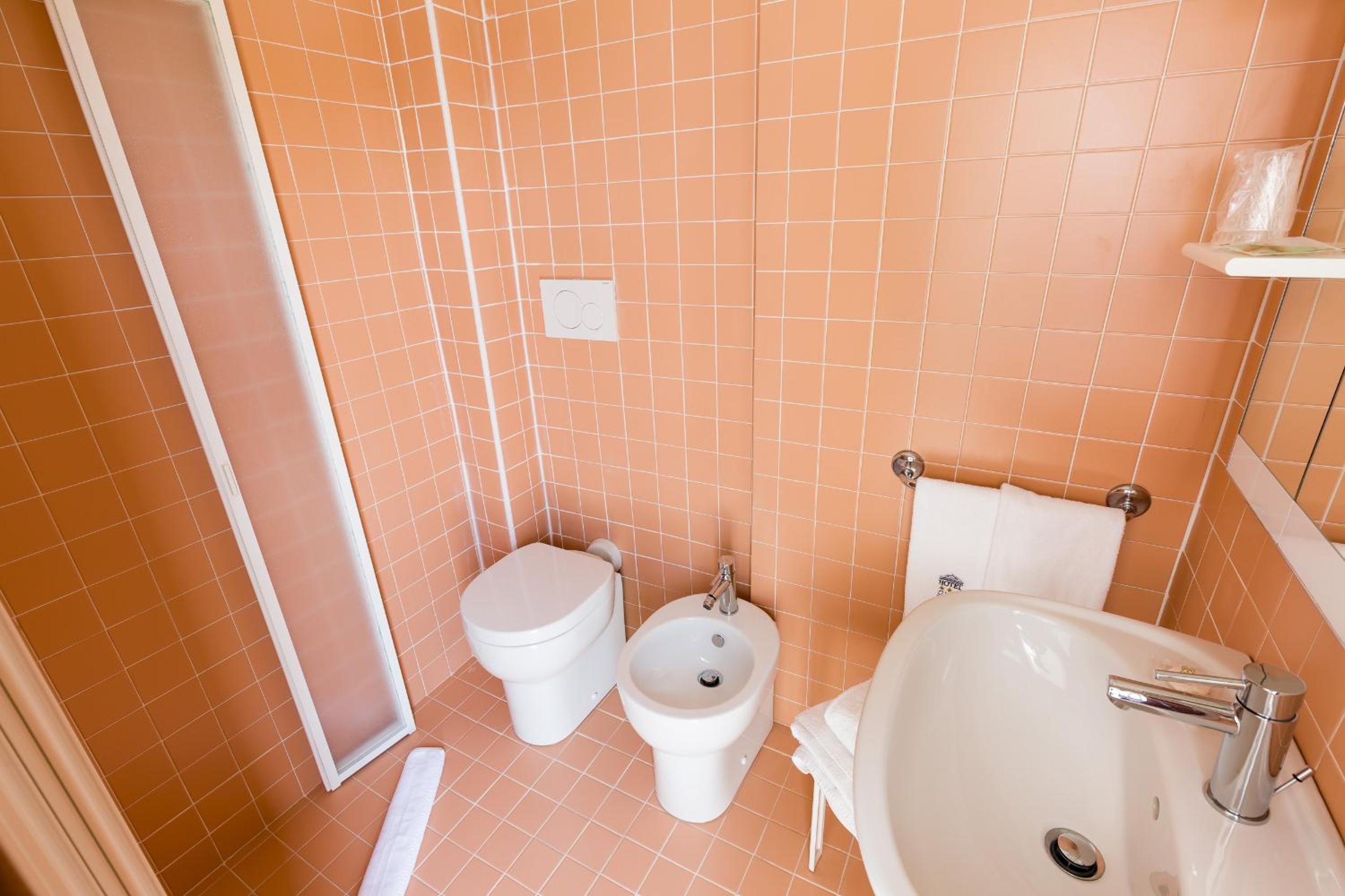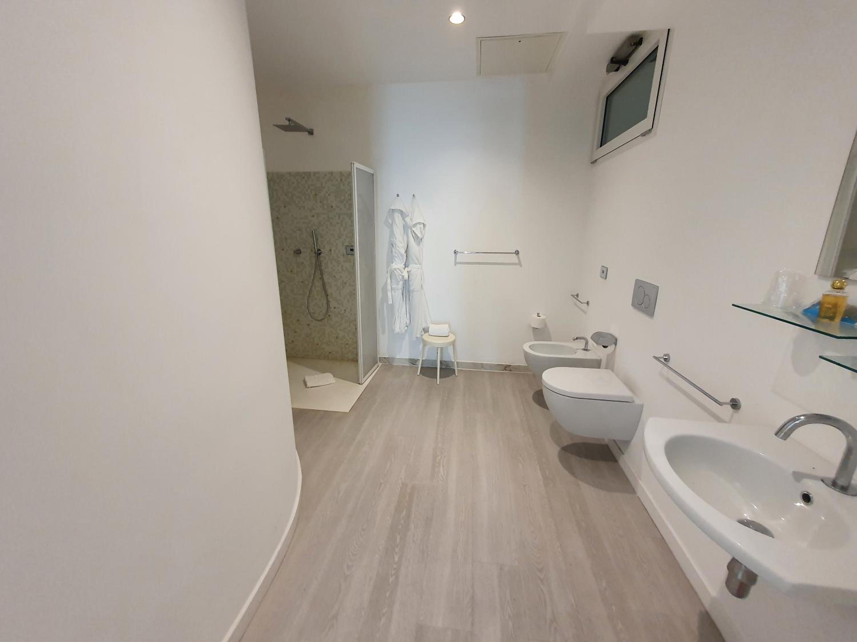 La stanza forse troppo piccola, box doccia inesistente ma aperta e un pó scomoda. Sanitari nuovi. Bagno pulitissimo.