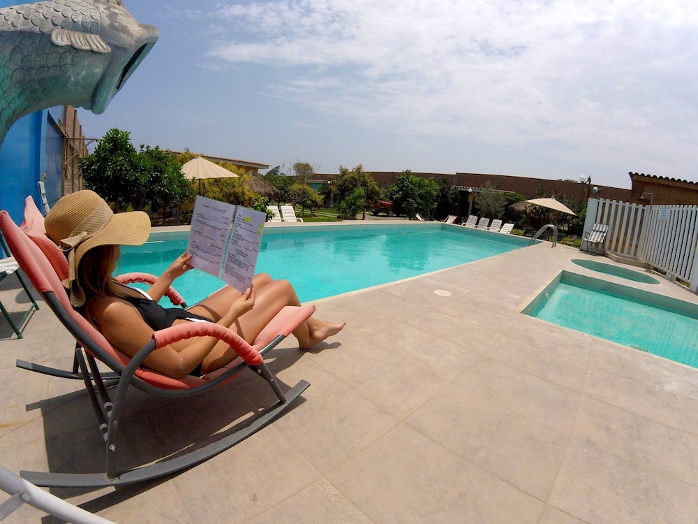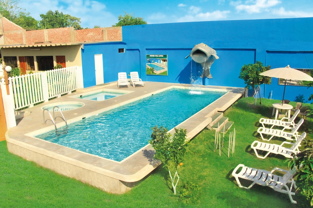 Relaxing Amenities - Unwind by taking a dip in the outdoor pool or rejuvenate in the soothing spa tub during your stay at Hotel Villa Kitzia Huacho.