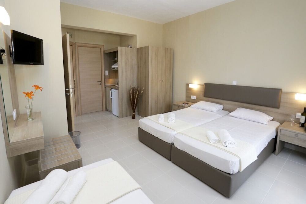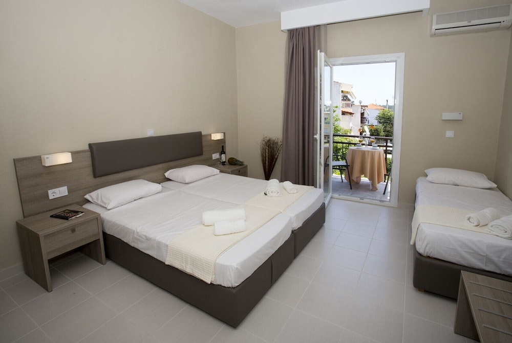 It was very nice in a very good location near Potos where you can go by foot.it was very clean with air condition really comfortable!!! The breakfast was excellent with great variety and served in a lovely place near the pool!!! Everyday was different!!! The pool also was very clean!!! The price was a bit expensive!!! For the greek standards!!! If it was cheaper we could stay more days!!!