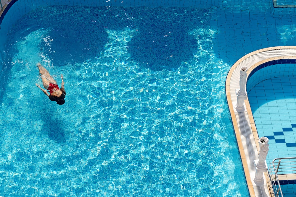 Belle piscine avec trois bassins pour enfants et adultes.