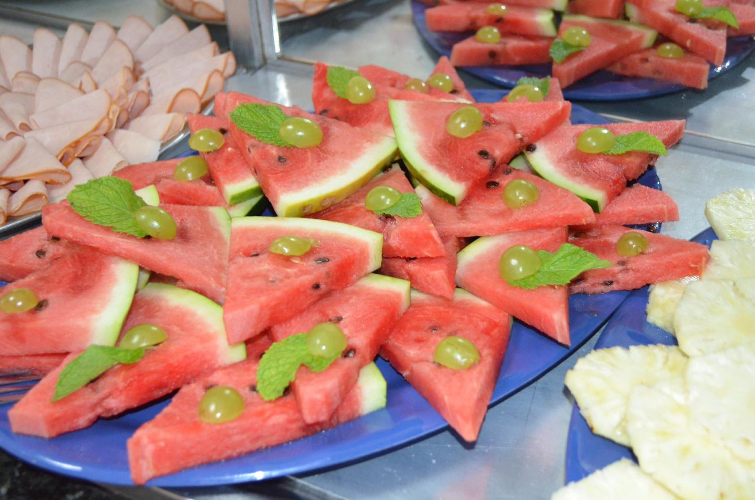 As opções de festas no café da manhã e a falta de abastecimento dos itens até o final.