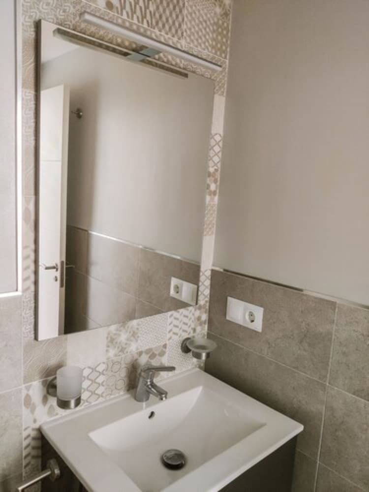 Douche sale, lavabo