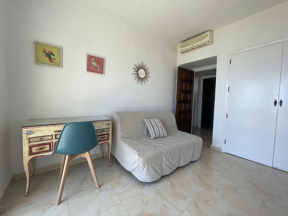 Posizione non troppo lontana da Malaga ma al contempo lontana dal caos cittadino. L'appartamento aveva vista mare. Abbastanza accogliente. Alla hall personale accogliente. Ci hanno dato le chiavi per aprire le sbarre del parcheggio.