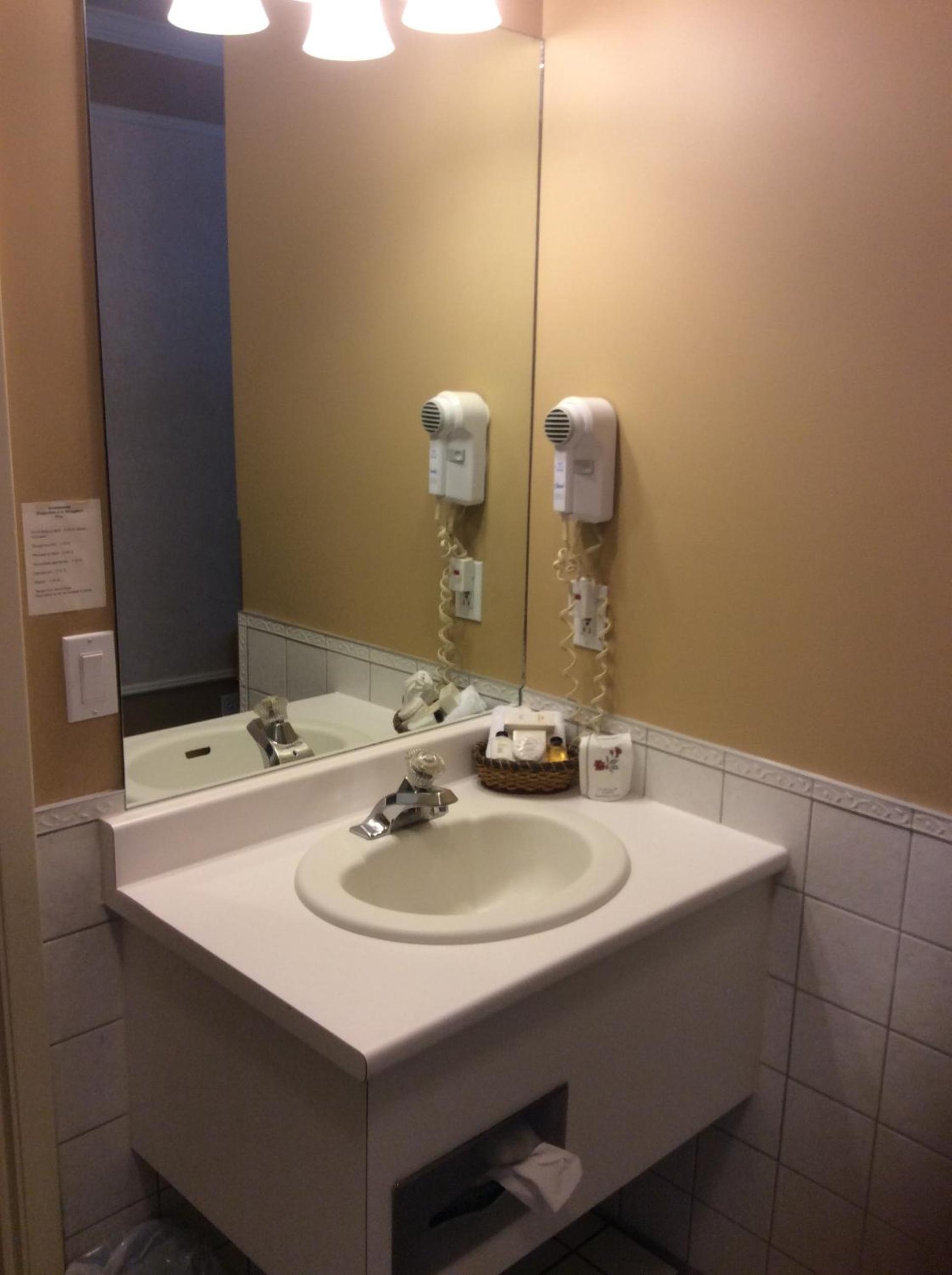 La plaque de la prise de courant à côté de mon lit était absente et non fixé, très dangereux surtout si vous avez des enfants. Pas de shampooing. Pas de fer à repasser malgré une planche sans le recouvrement. Fissure au plafond. Pas confiance au tapis. Plancher froid. Tapisserie qui décolle. Décor plus que désuet. Une des deux cartes ne fonctionnait pas. Instructions pour le téléviseur serait un atout, nous n’avons pas réussi à l’utiliser.