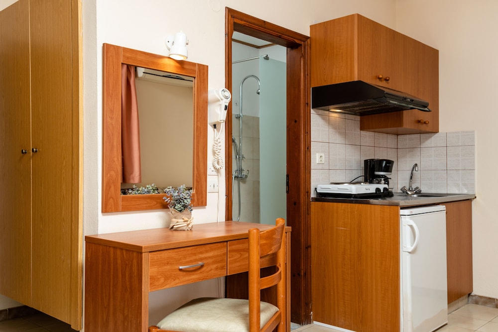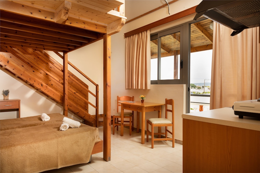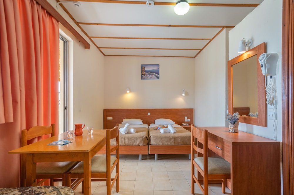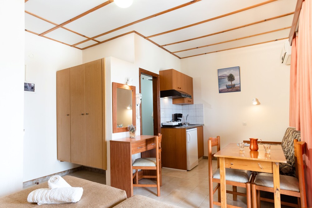 Greek family and if you need something they help you! Everything is clean. The rooms are basic but good. And nice balcony's. Kitchen in the room and you can make your coffee. Only the watertap in bathroom was not working well. Roo 201. But fantastic stay, good location and also swimmingpool area is nice. Most of guests from Danmark and very friendly and polite. I will come back net year.