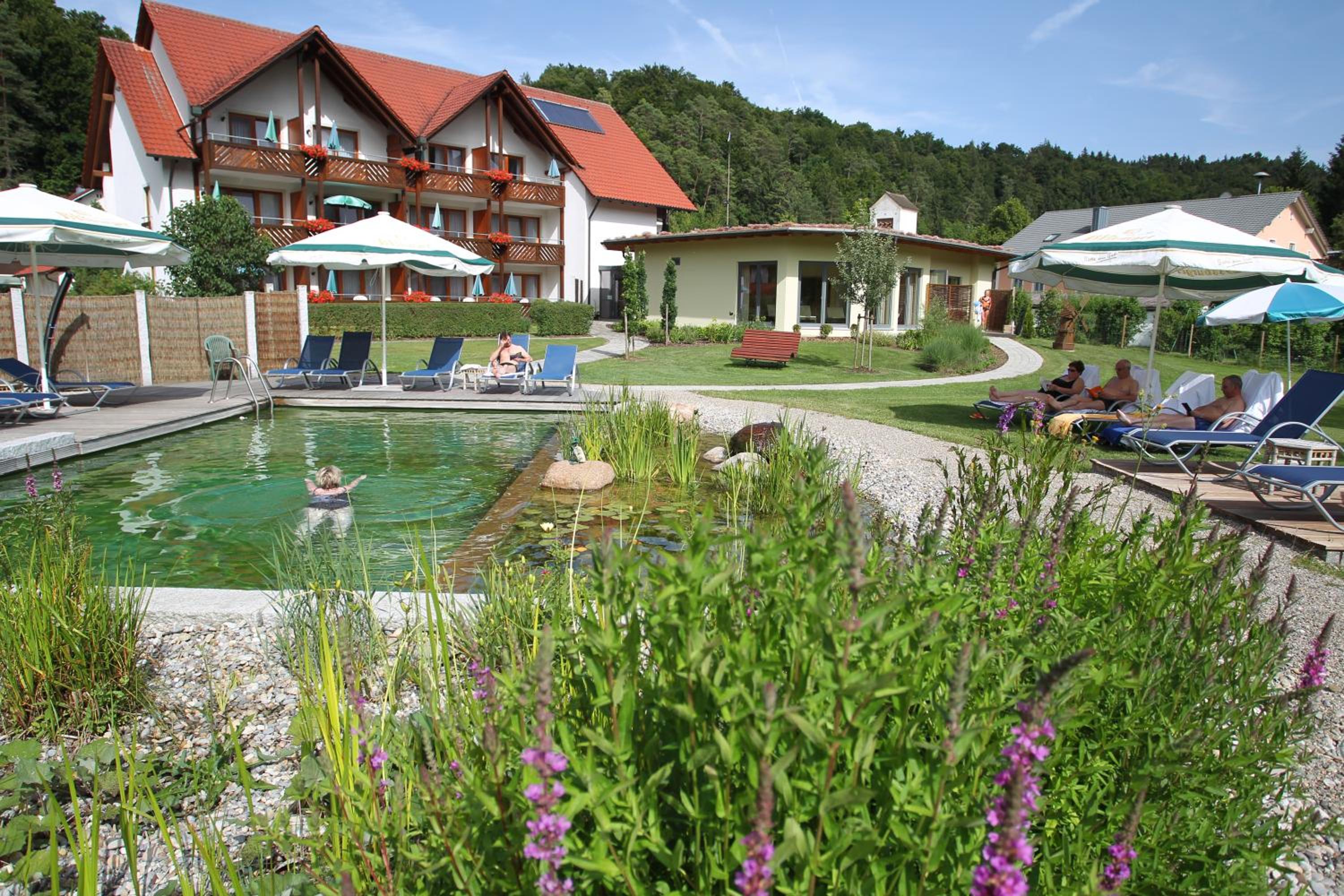 Nestled in the village of Schambach, our 3-star hotel offers a serene escape with a relaxing bathing pond and complimentary use of wellness amenities. Unwind on loungers by the pond or pamper yourself in the Lindenblüte wellness area featuring saunas, steam room, and massage services.