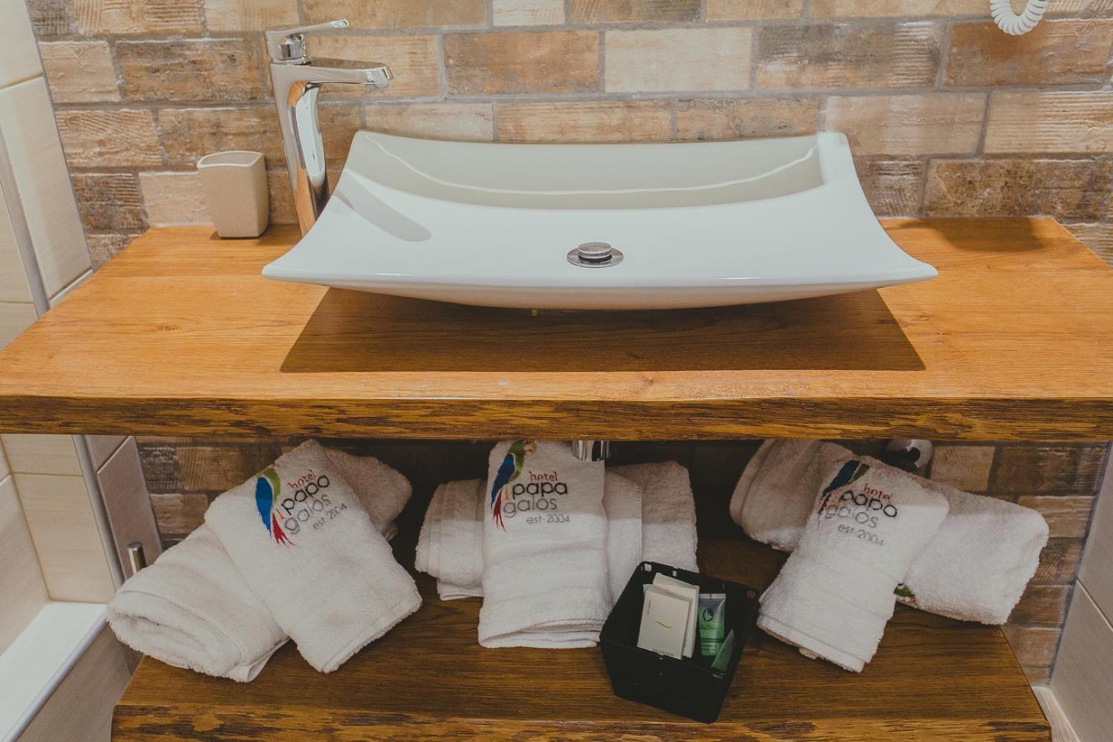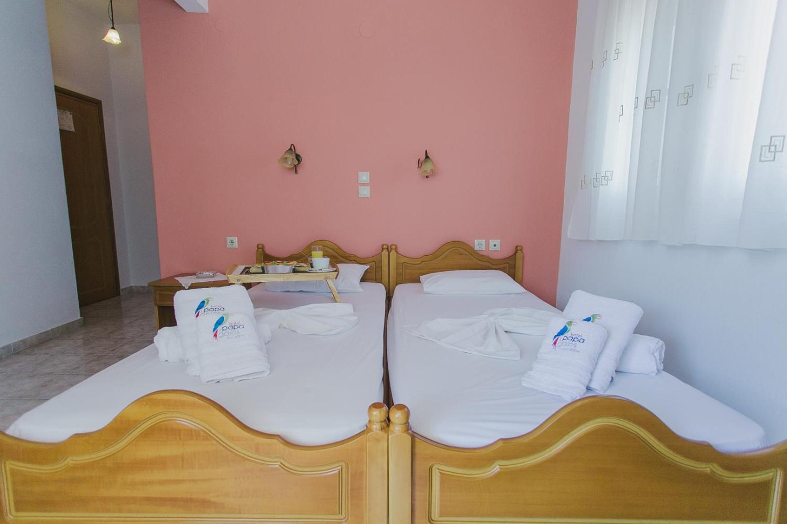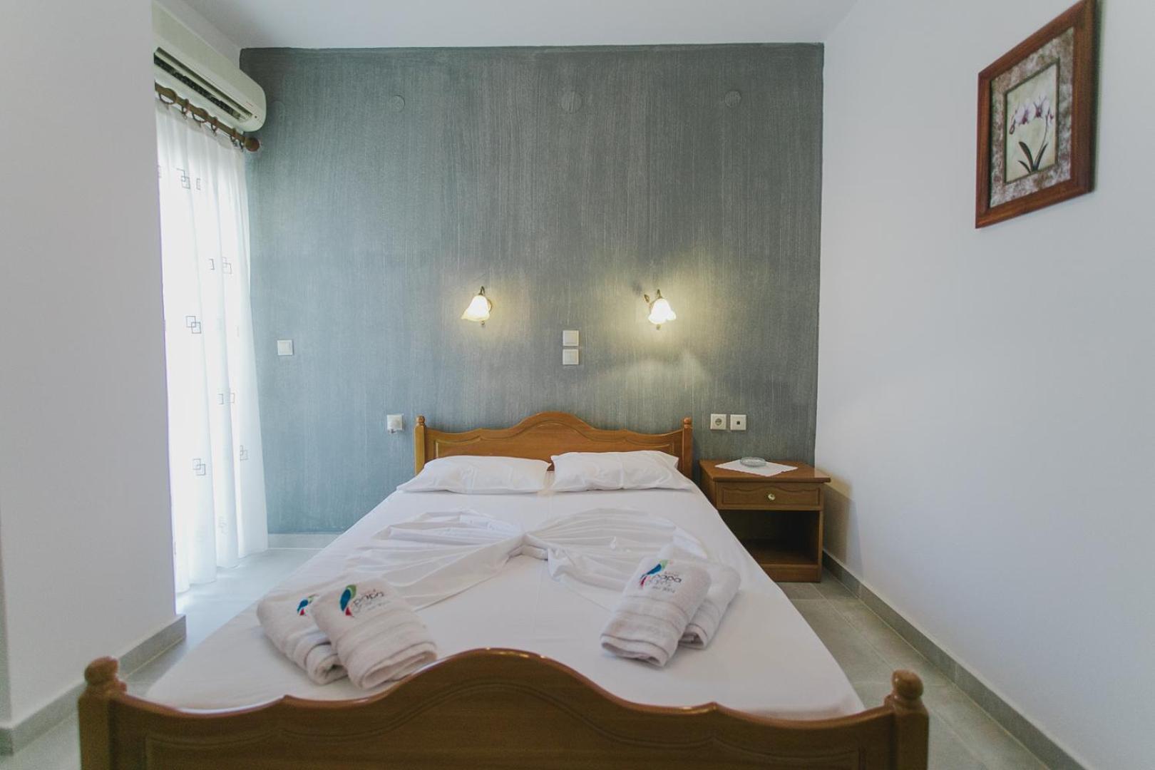 The rooms at Papagalos Hotel are designed for your comfort, featuring air conditioning, heating, TV, and a fridge. Relax in a cozy atmosphere with tiled floors and white-washed walls. Free WiFi keeps you connected throughout your stay.