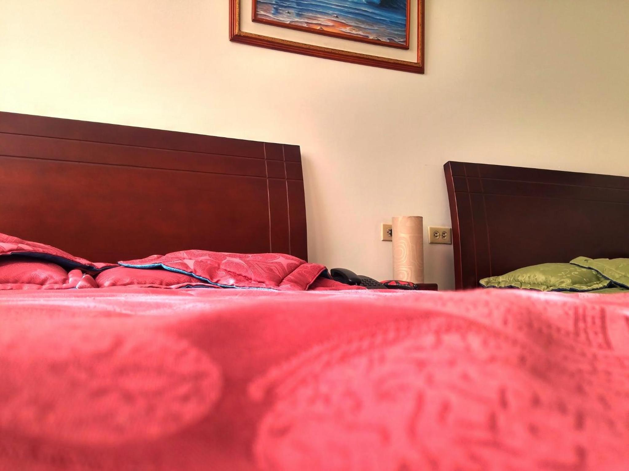 The pillows were stained and dirty, so I requested another room. Those pillow sheets were also dirty (dark red stains)...I investigated under the covers and saw a lot of red dots / stains...and black specs...signs of bed bugs unfortunately. They need a deep clean.