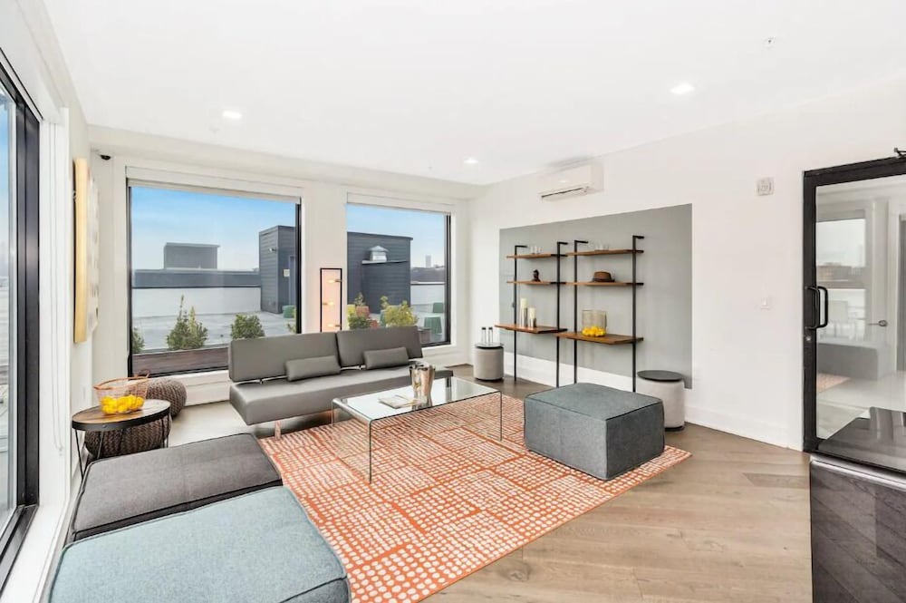 Located in the entertainment district, near popular attractions like Hoboken Waterfront and Times Square, our upscale apartment offers easy access to key destinations.