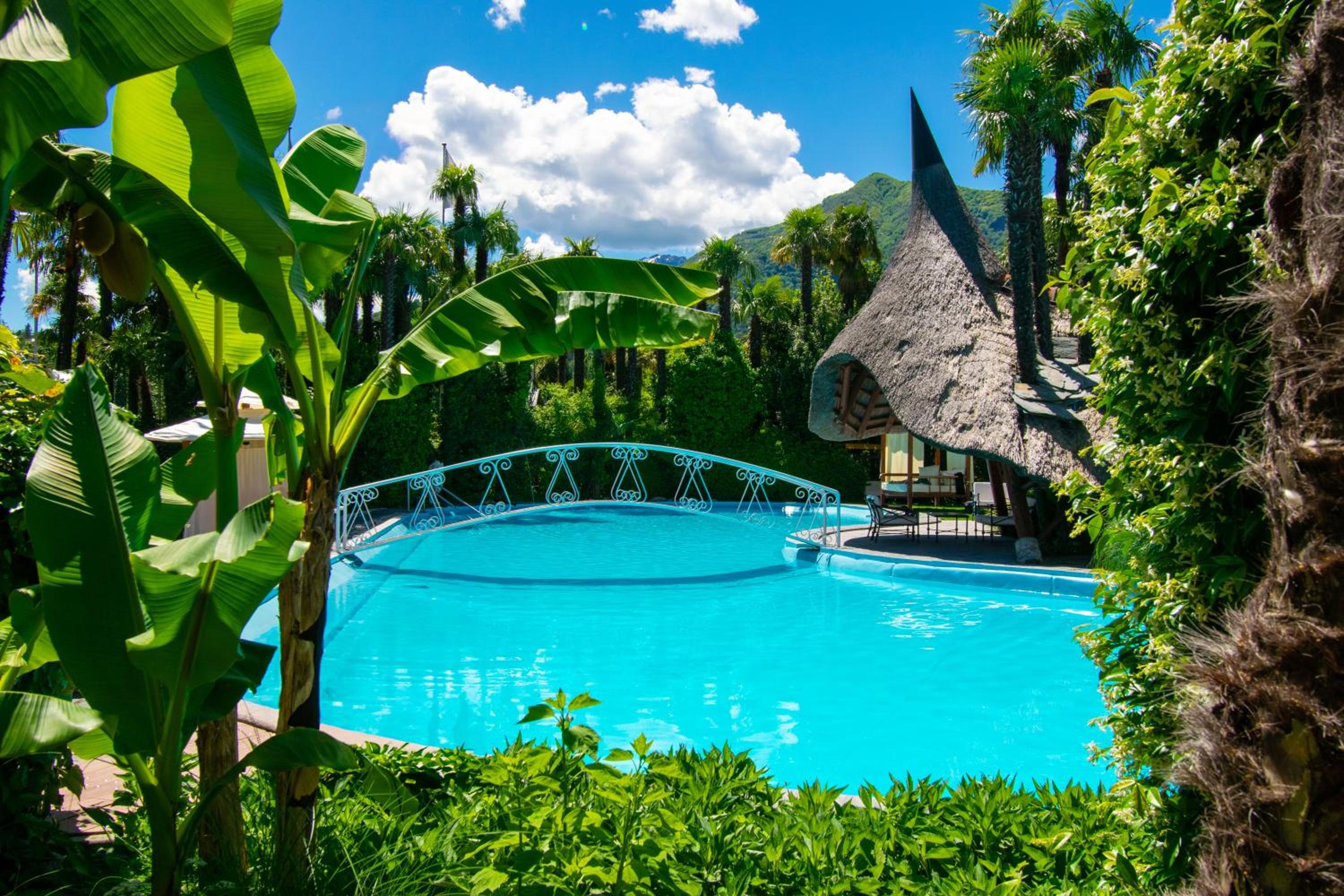 Surrounded by a large garden with palm trees, a heated outdoor pool, private golf course, and petting zoo, Albergo Losone offers a unique blend of luxury and leisure activities.