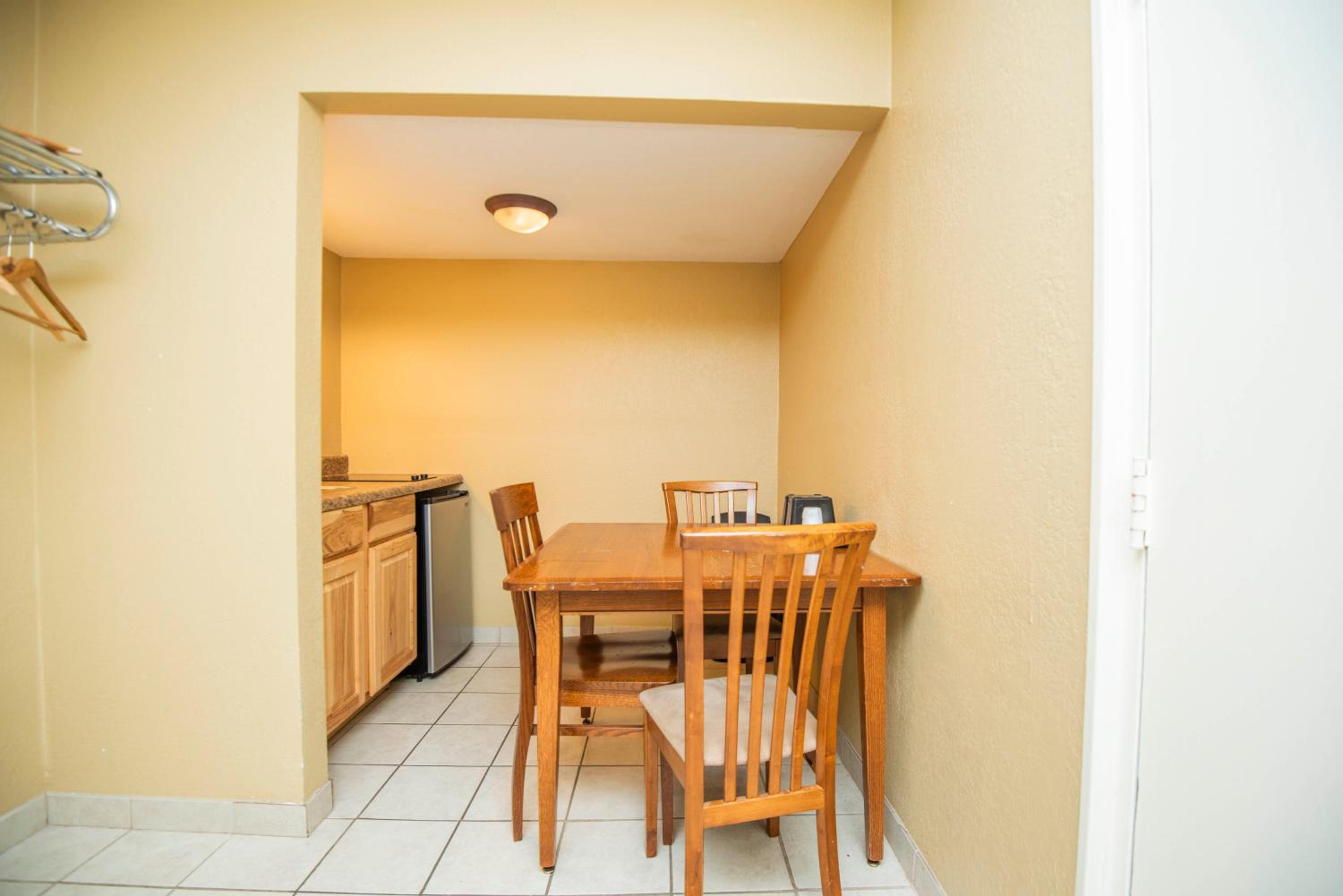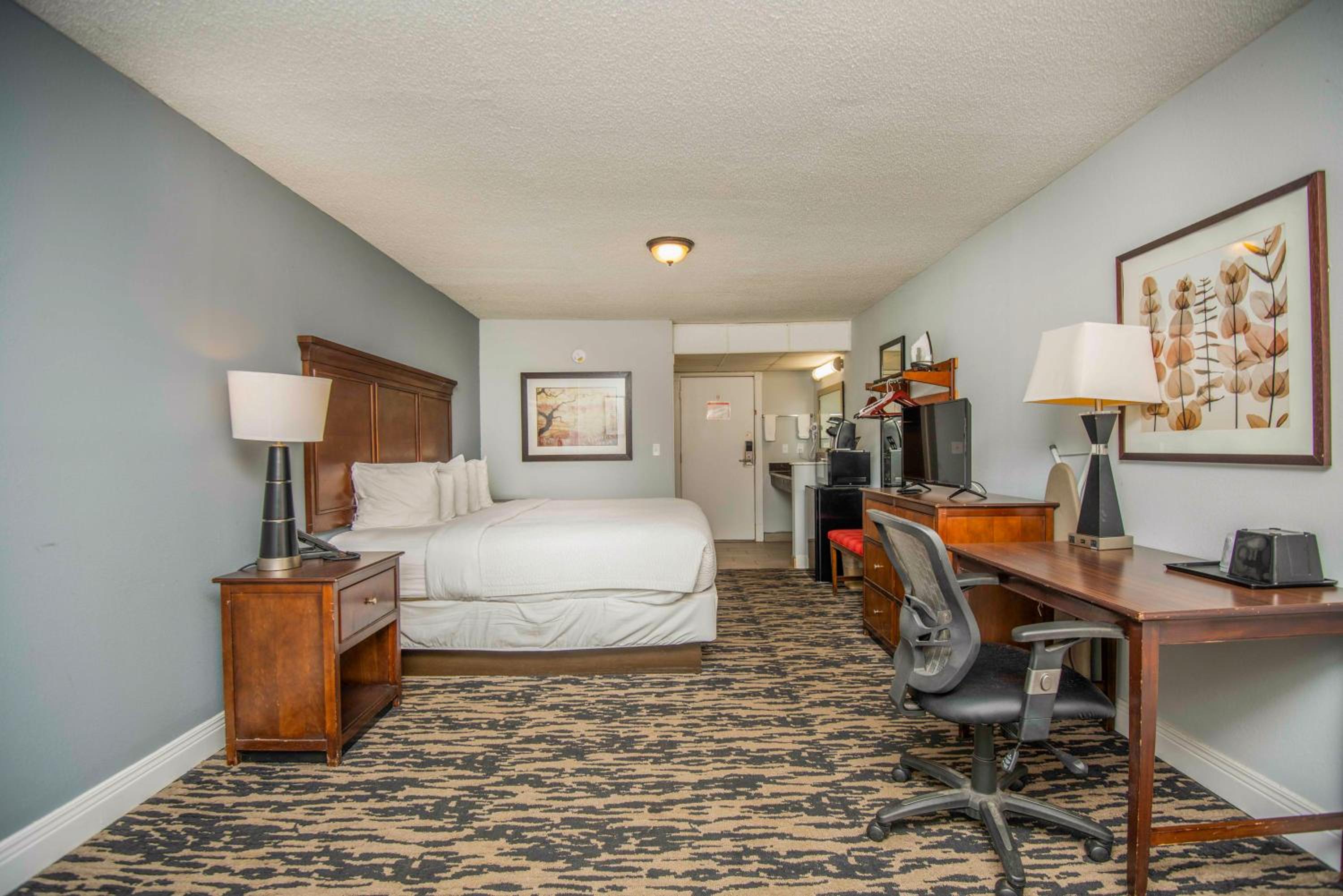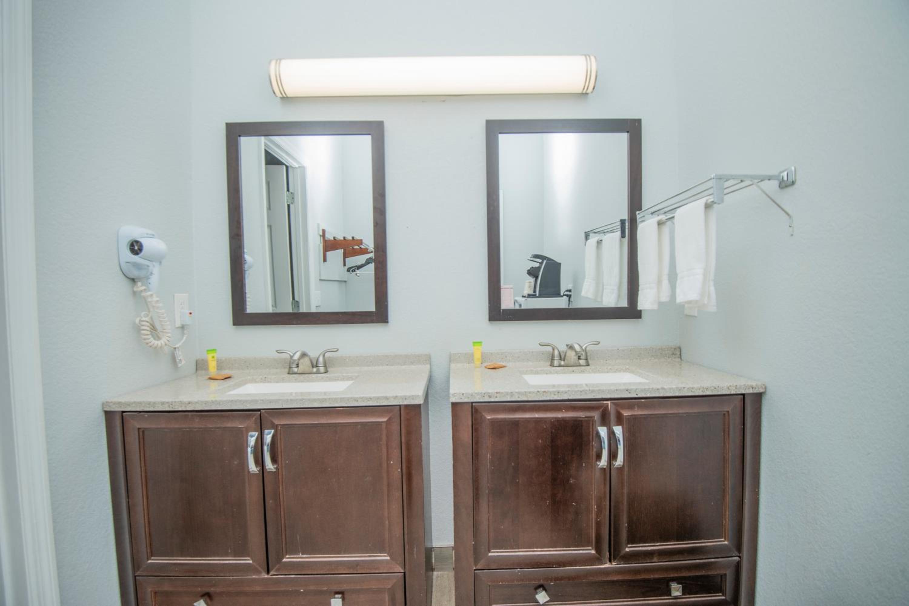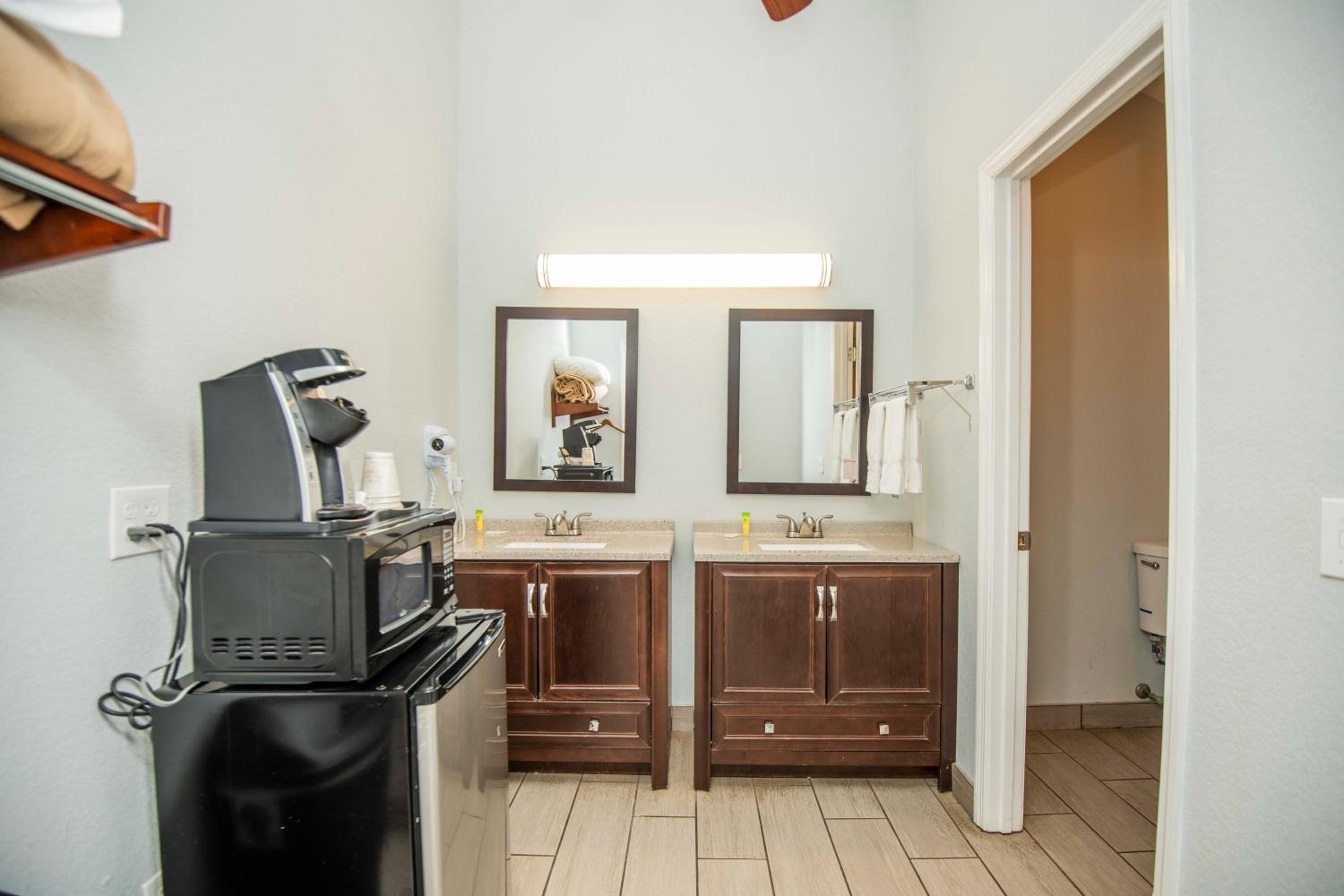 The room was spacious and bed was comfortable. I appreciated the Keurig, but a full size coffee pot (as an option) would benefit those of us who drink several cups of coffee in the morning. Overall, it was a nice stay!