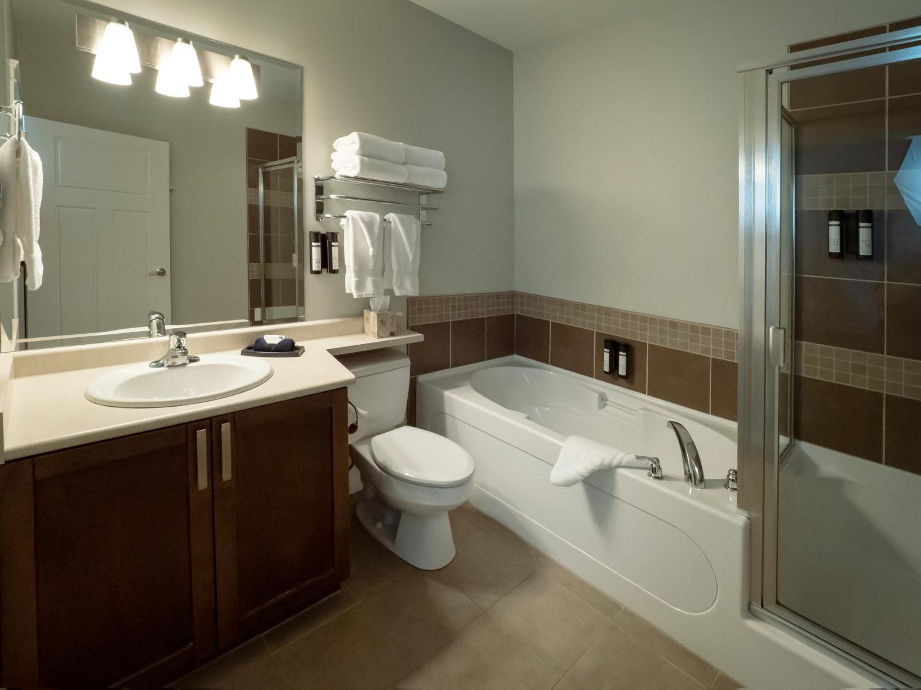 Very nice to have a suite with separate bedroom. We enjoy cooking our our meals and doing laundry when we need to. There was some noise from the piledriving happening on the river right out our windows, but wasn't overnight so didn't really effect our stay. It's a walk outside to get to the hot tub/pool if your staying at the Maple building so a bit inconvenient when it was raining.