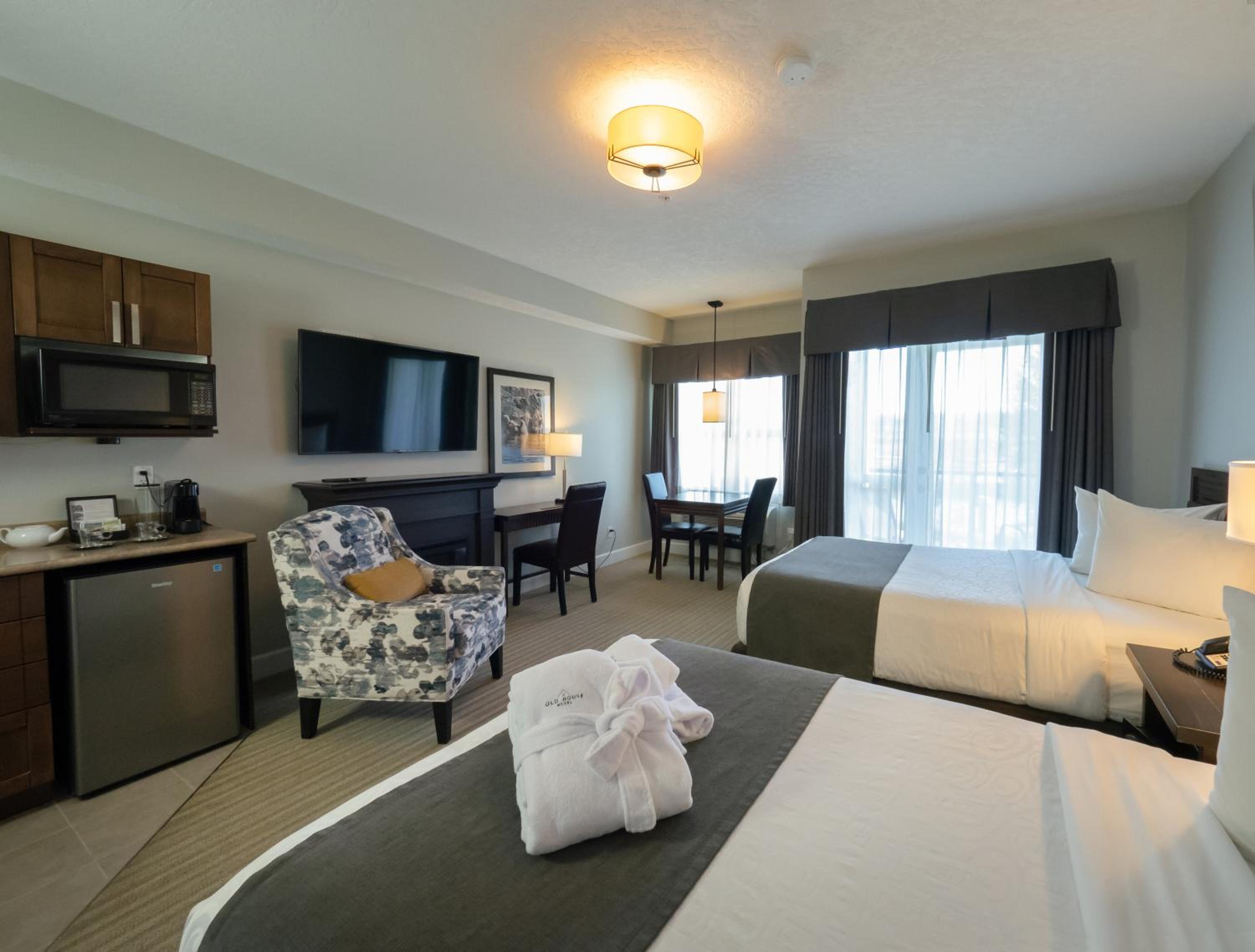 The Old House Hotel, located in the heart of the Comox Valley, offers spacious and uniquely designed suites with kitchenettes and fireplaces, providing a comfortable and welcoming stay experience.