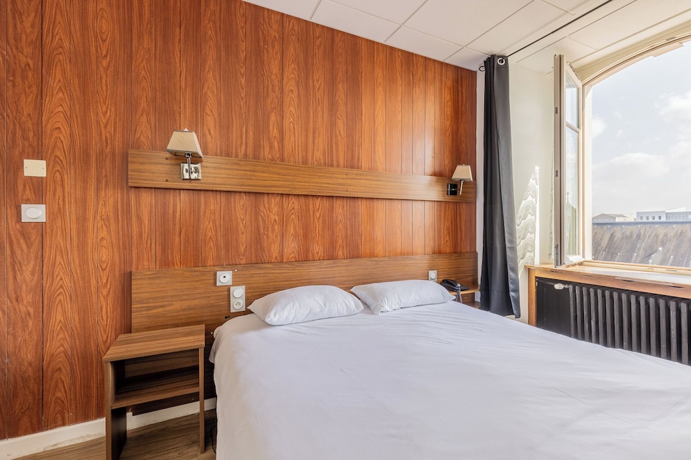 Grande chambre avec lit séparé comme demandé, couloir d entrée séparé, donnant sur salle de bain d un coté et chambre de l autre. Silencieux. Bon petit-déjeuner. Bon rapport qualité prix. Face à la gare, proche centre pompidou à 3 minutese passant au travers de la gare.
