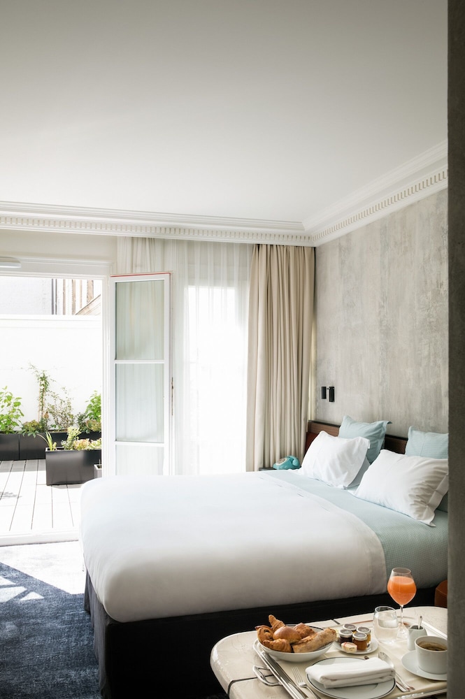 Absolutely a gem! Charming chic hotel near the Marais neighborhood. Easy access to shopping and dining, but on a quiet street. The room (Executive) was large with a terrace. Cool decor. Comfy and great a/c. No issues whatsoever. Book it now!