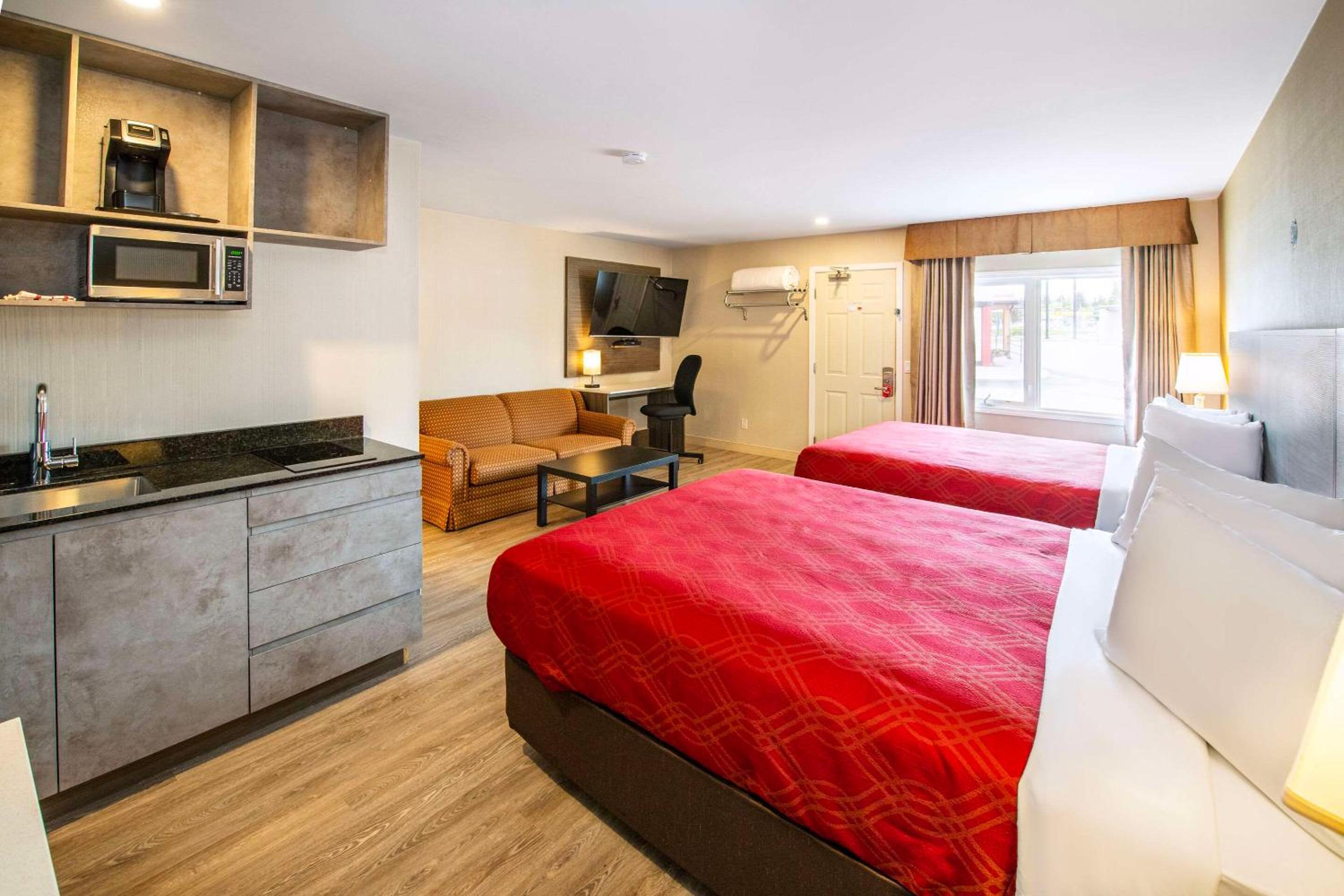 Updated decor, comfortable bed and modern extras- fridge, coffeemaker, toaster plus stove top and microwave.