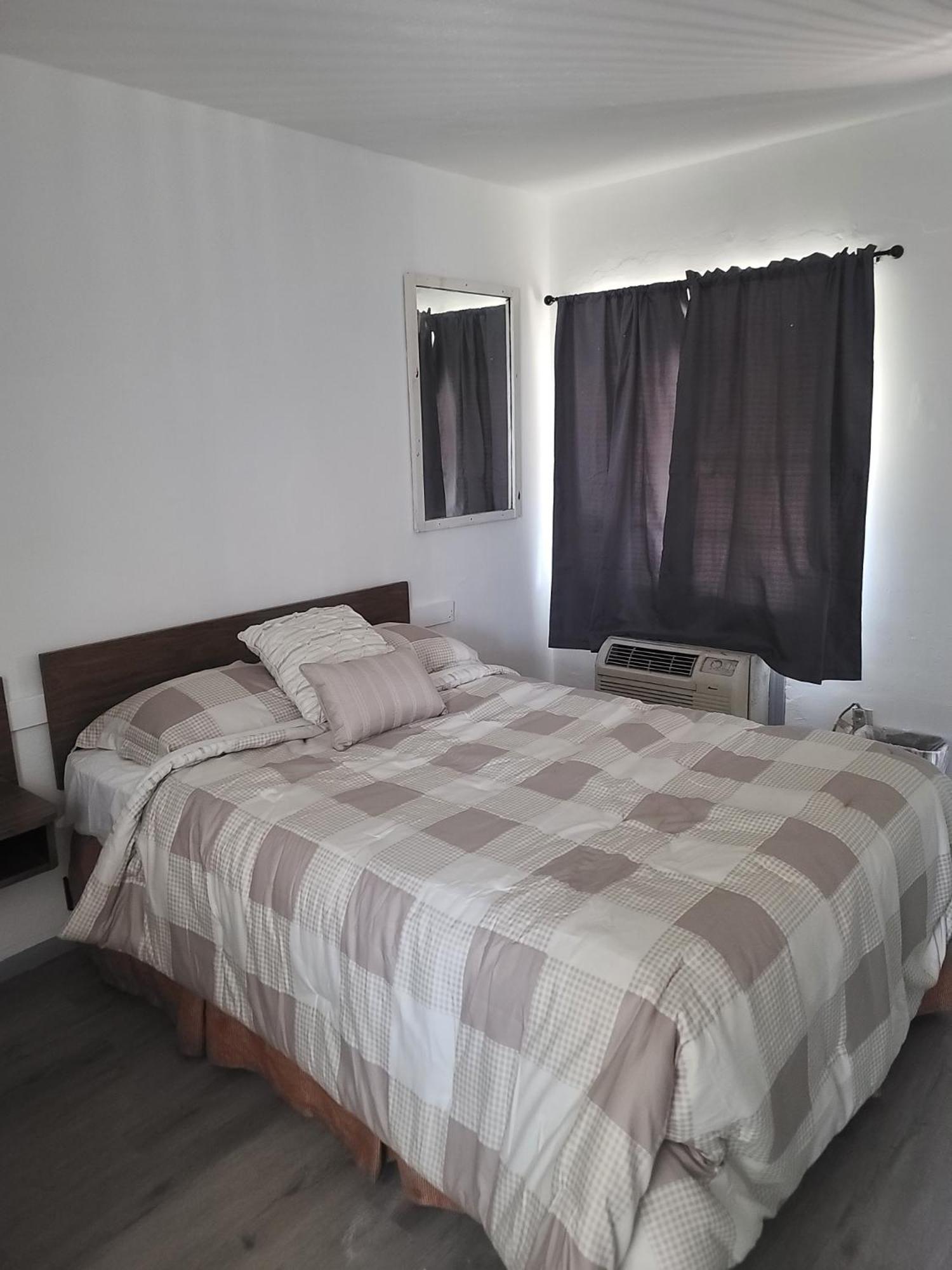 Nothing I could like in this motel. No refrigerator! I bought beer and I'm drinking warm beer here! No plastic cups to drink with. No table to put my stuff on it. Just one tovel for showering! No air-conditioned! In here is the ditty fan with horrible noise like Helicopter. The electric heater for the second world war! Something I saw in my grandparents childish pictures. I really do not feel safe here. I'm thinking if it is even up to code? What if the heater born the bed next to it. The not smoking room smells like fresh cigarettes. The room is totally different with pictures in the booking.com app. Manager the worst attitude ever. Nothing like being in the U.S.A.. I feel like getting robbed here.