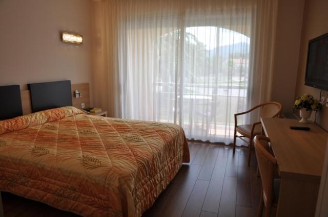 Hotel-Poretta offers a range of luxurious amenities, from a seasonal outdoor swimming pool to rooms with loggias. The wooden floors, flat-screen TV, and spacious bathrooms in each room ensure a comfortable stay.
