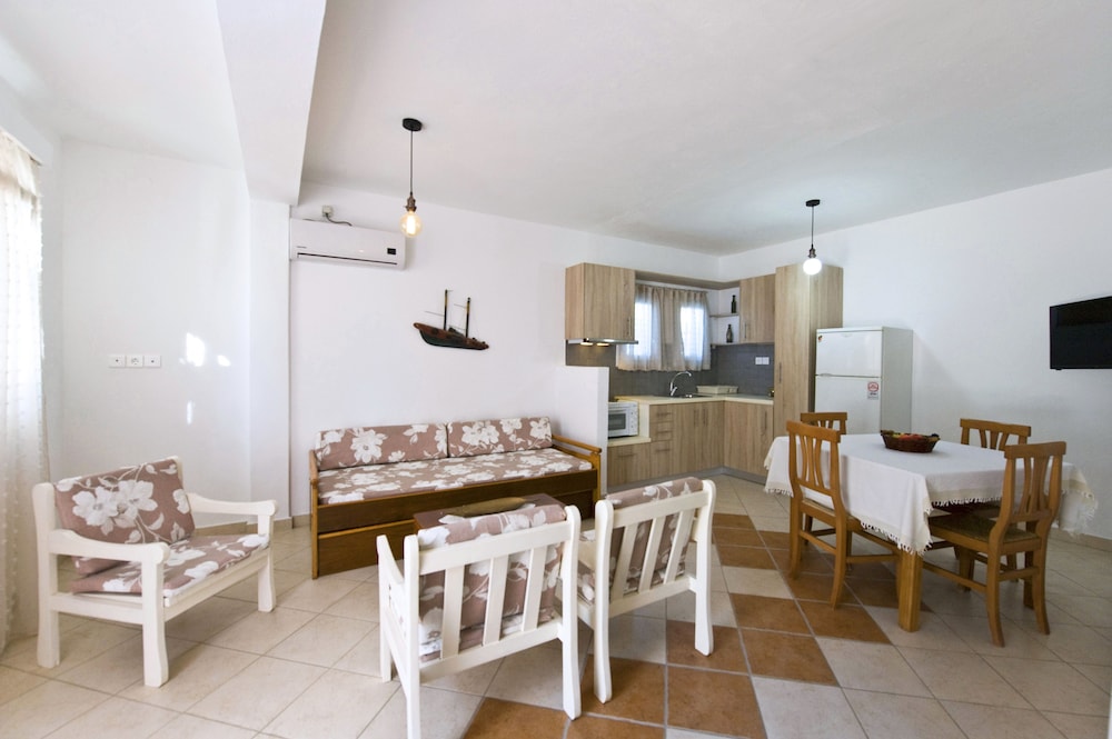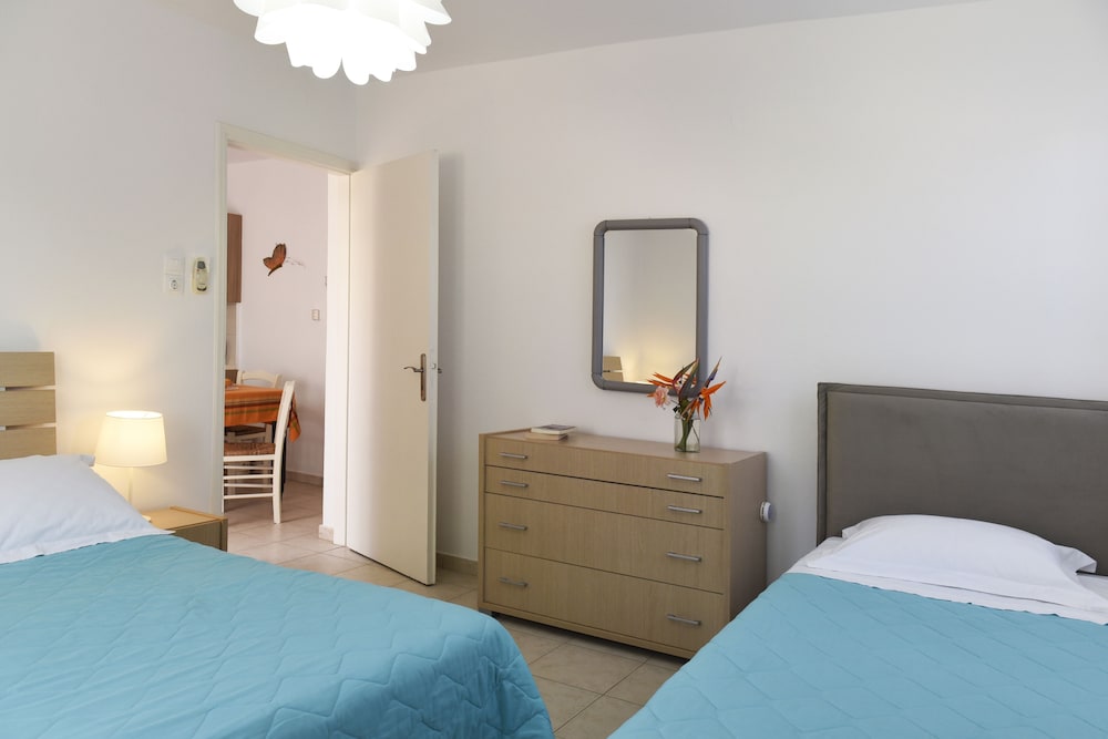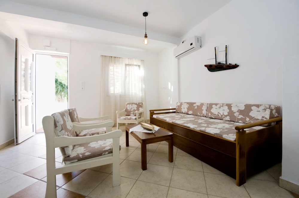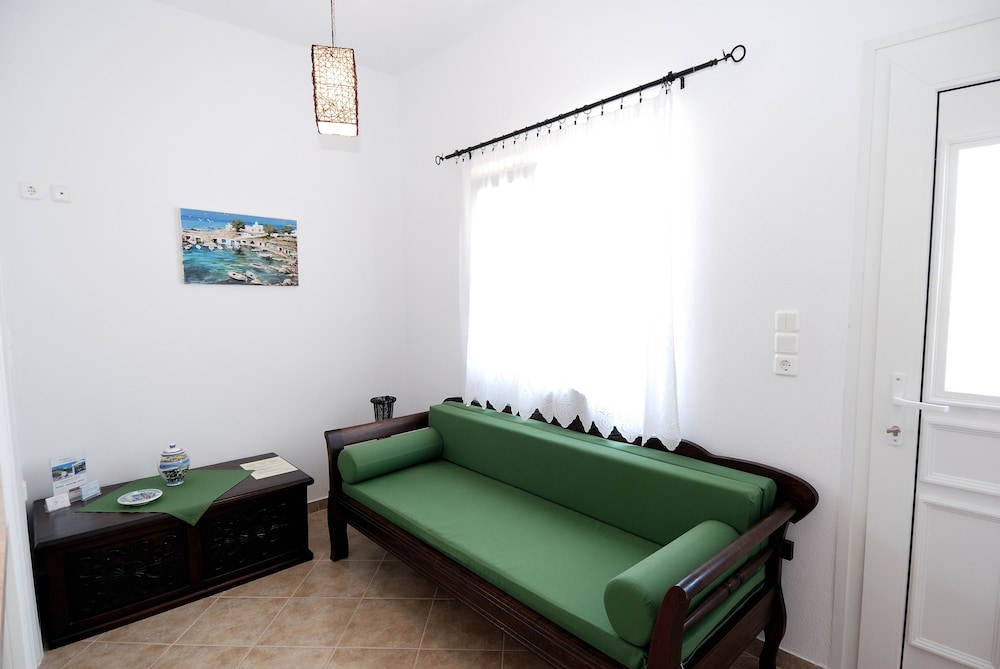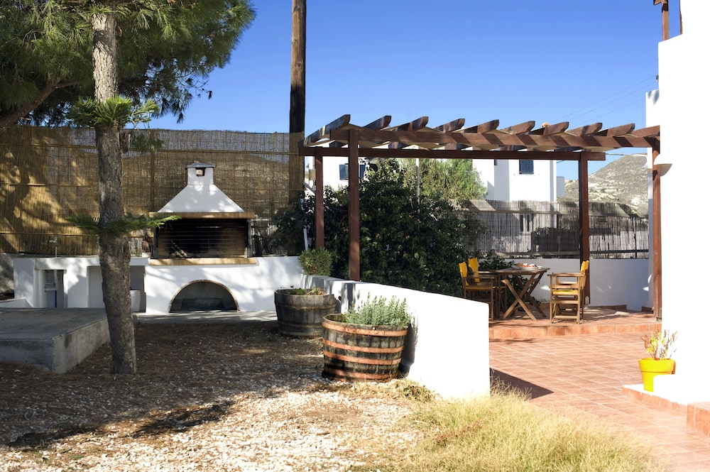 Great place! Within walking distance to the main part of town. A really good bakery/convenience store is close by. The staff brings a big wonderful breakfast every morning. A perfect place to stay on Milos.