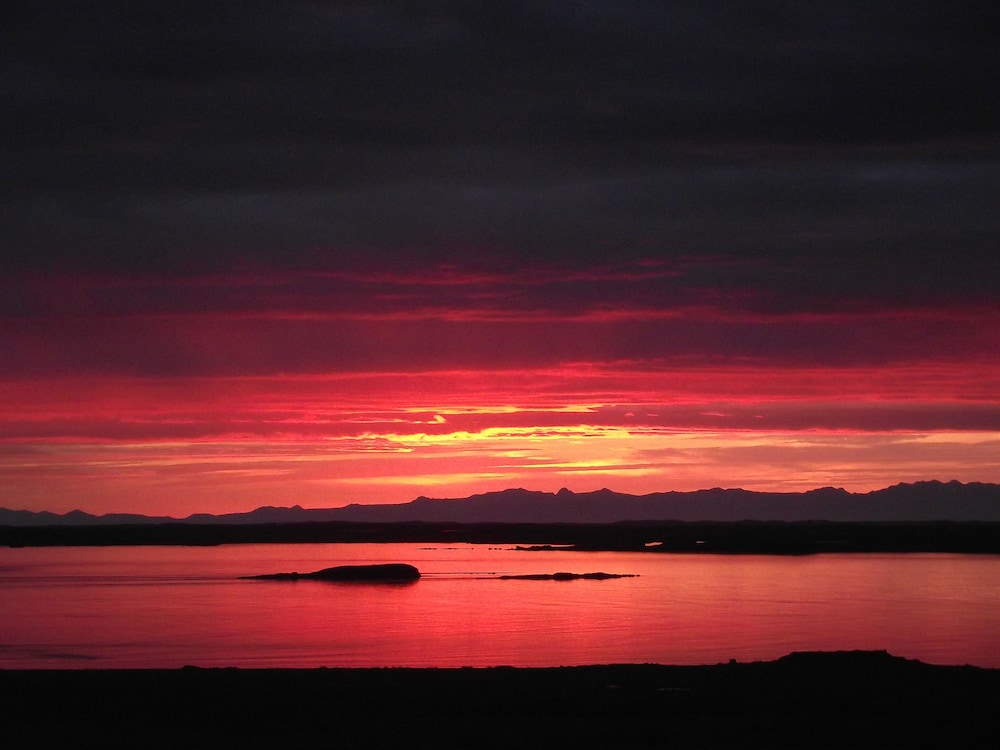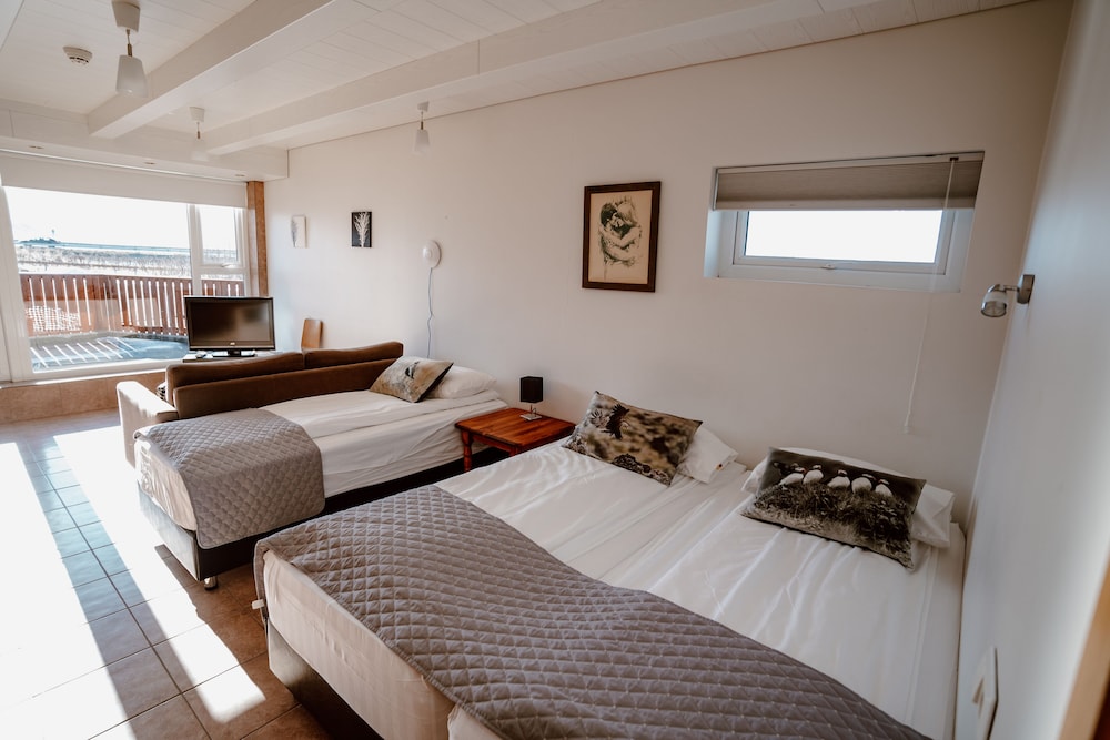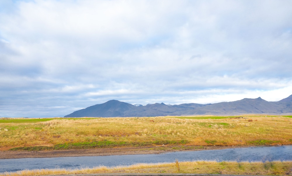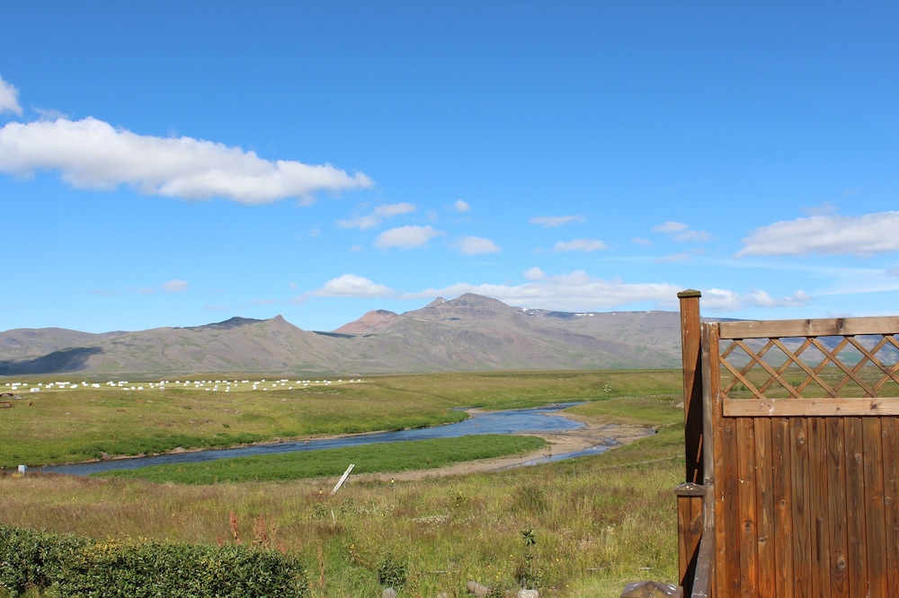 Stayed for one night with my husband. Plenty of parking. The one member of staff (30. Oct 2024) who checked us in, cooked our dinner, and cleaned up was awesome. We found it a little inconvenient to exit the reception area to re-enter the area with the rooms, especially as it was drizzling. The kitchenette was stocked with the necessary tools for self-catering. The sauna and hot tub were clean and adequate. Unfortunately, our shower flooded the entire bathroom. The hotel is a little remote, but the view outside of our window made up for that. Thus, we both had a good night's sleep and found the hotel very peaceful. It would be a good stopover to the Snaefellsness peninsula. Overall, a pleasant stay and would stay again.