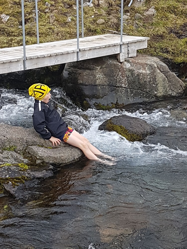 The room was clean. Washer and dryer combo machine in the room. Laundry facilities are in very short supply in Iceland and your clothes are going to get wet! The refrigerator REAKED like fish, bad, so bad. Cute sauna and hot tub. By a beautiful river but no view from the room.