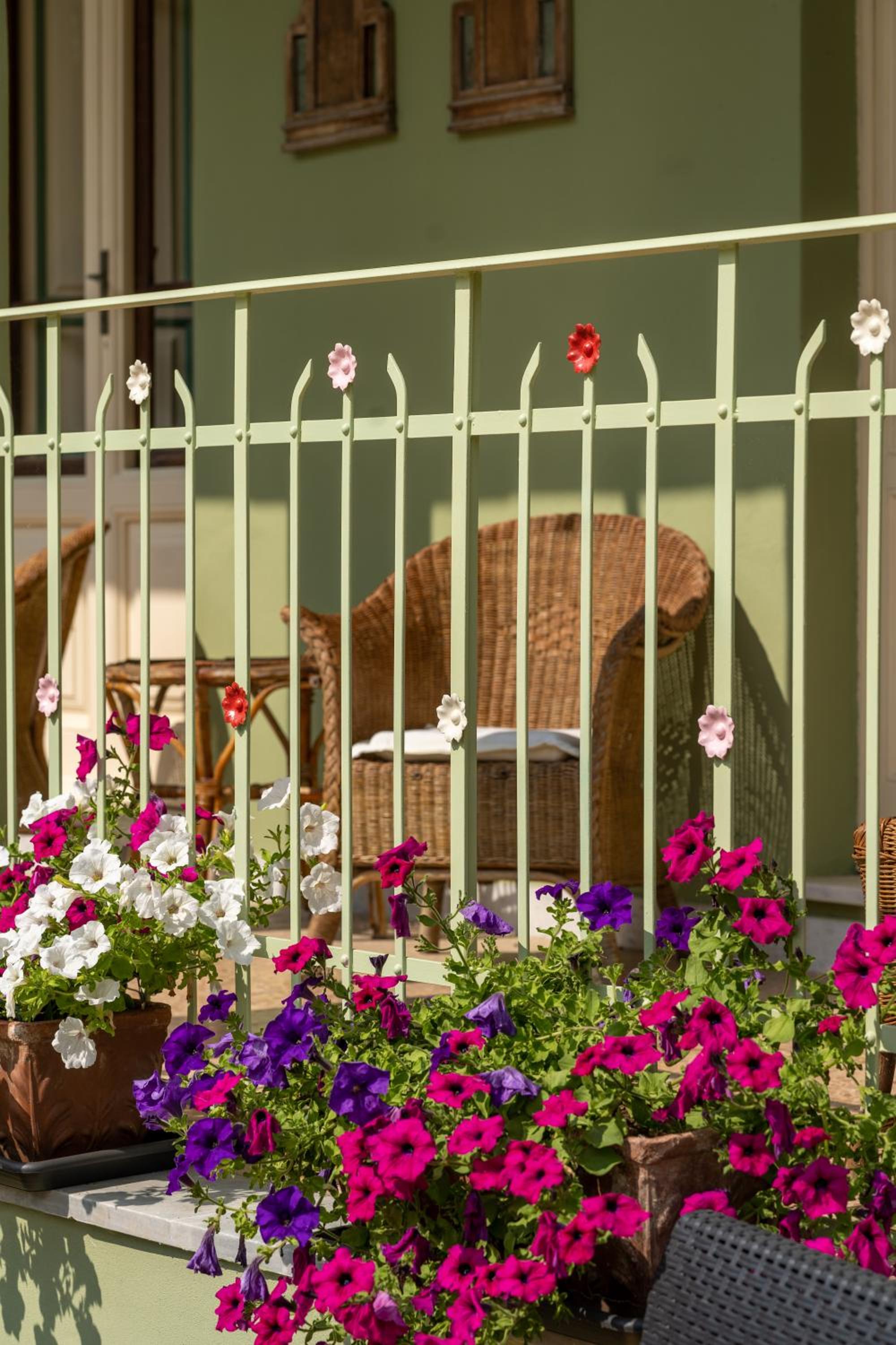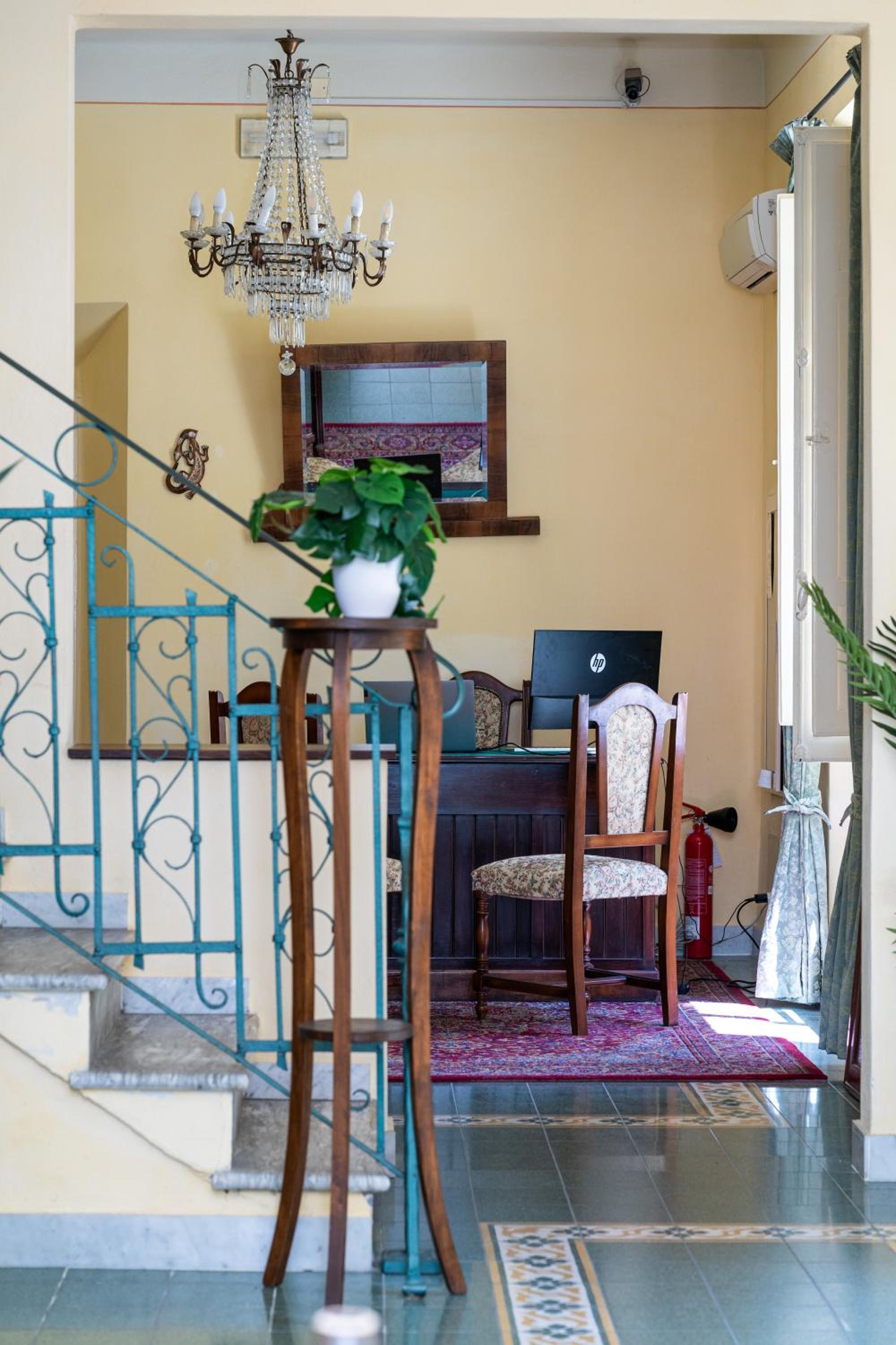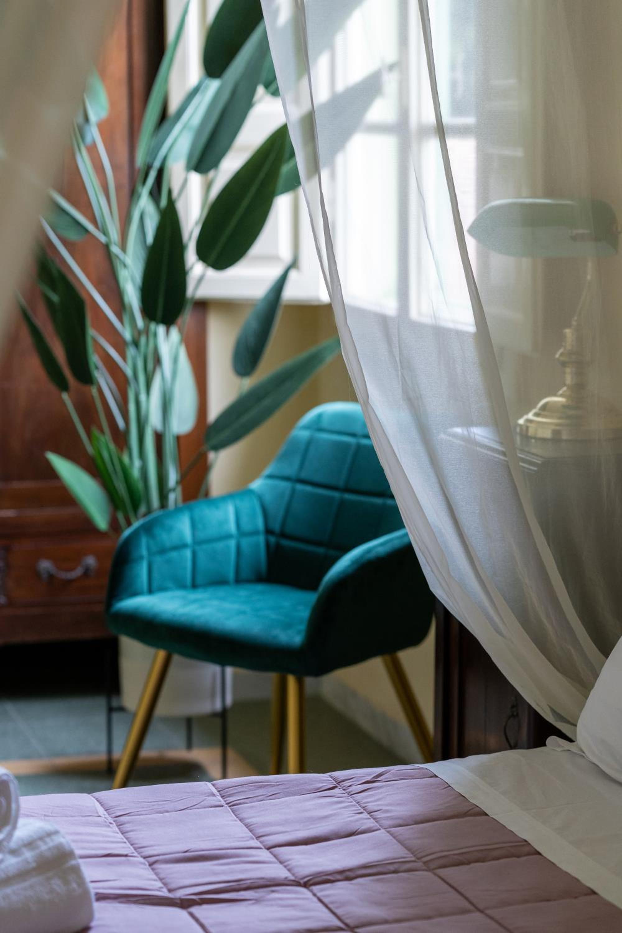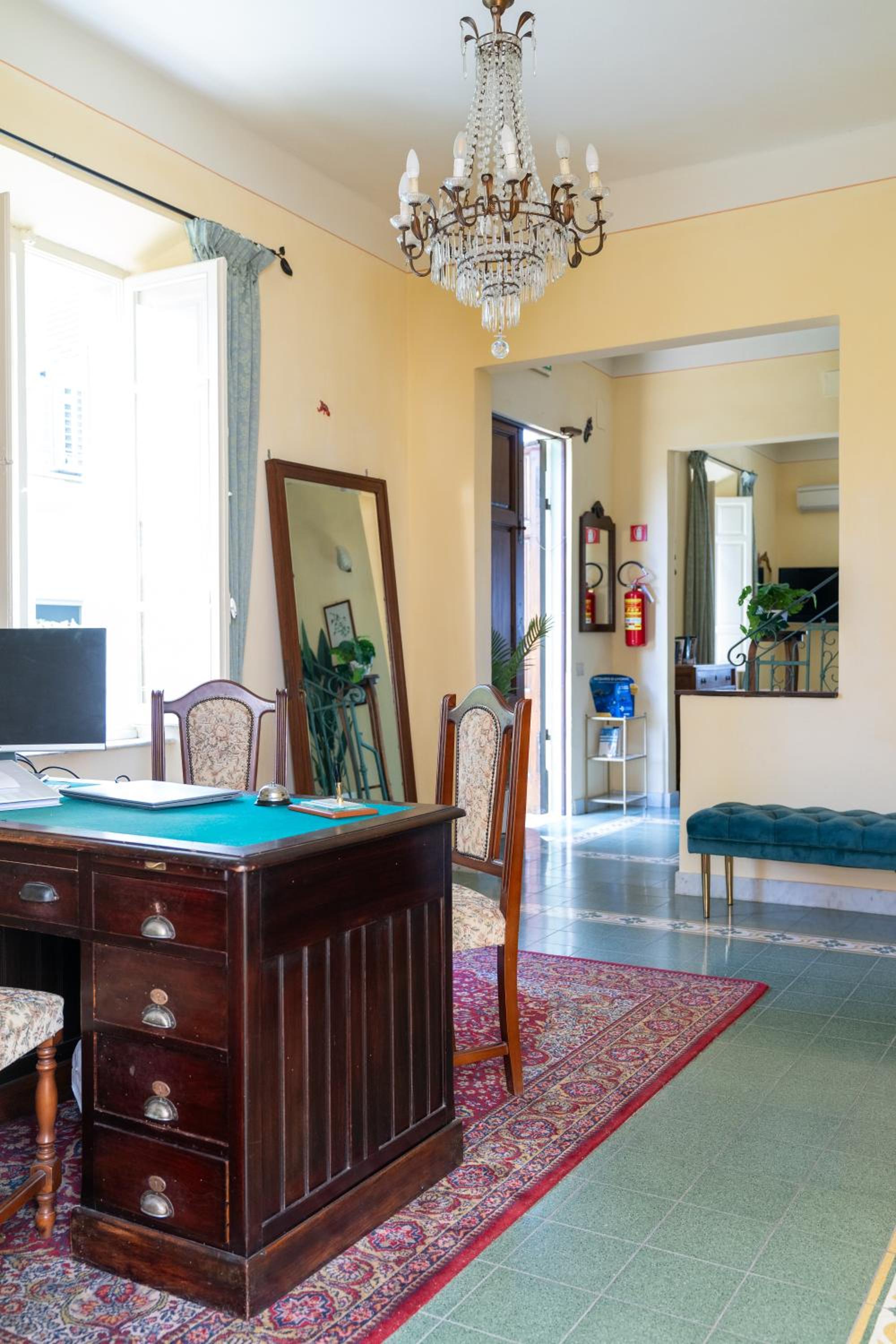Relax on the furnished patio or in the elegant shared living area with original Art Nouveau chandeliers. Start your day with a delicious breakfast in the dining room.