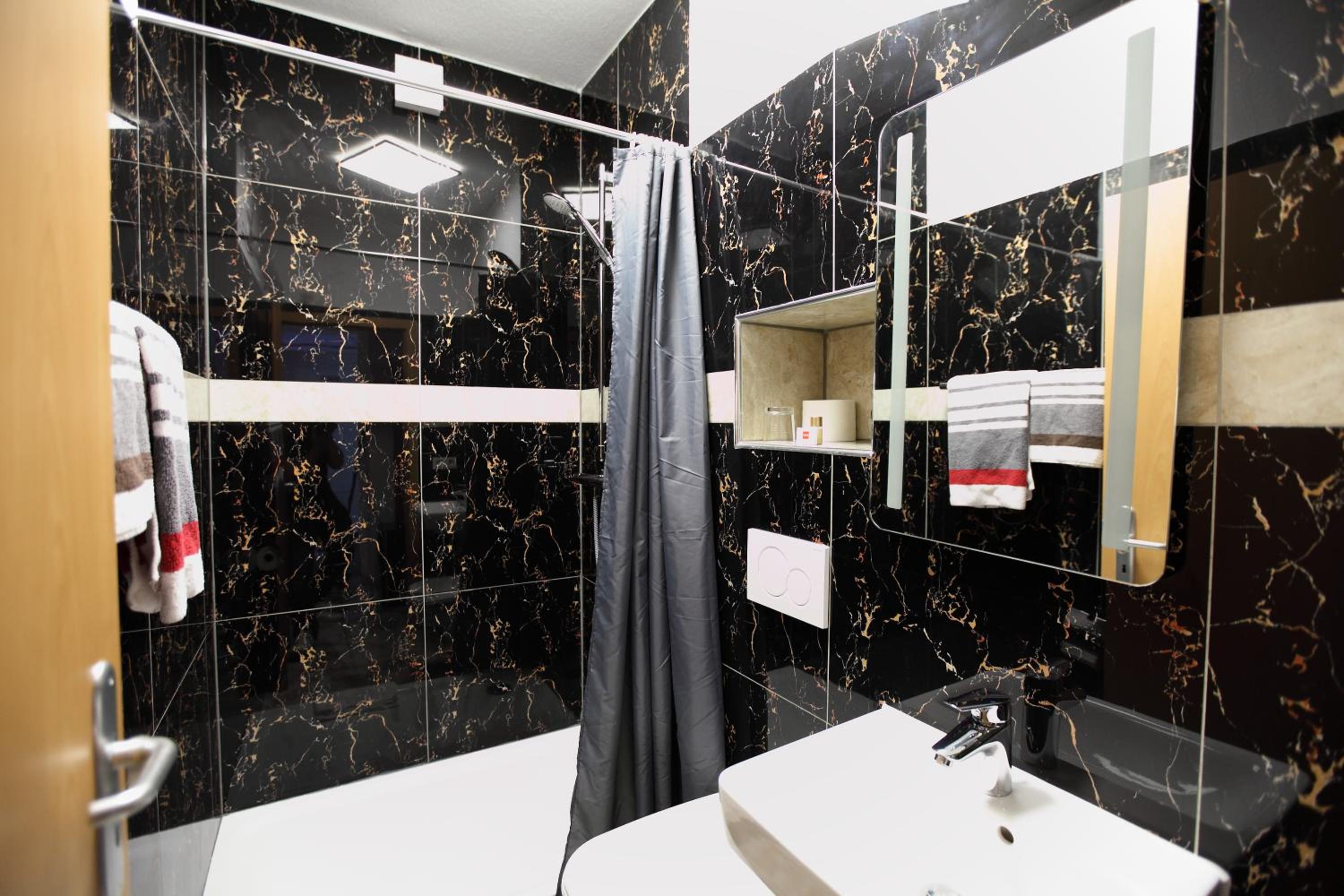 Das Zimmer , war durch die dunklen Möbel nicht so einladend. Der Marmor Boden war sehr kalt ..
