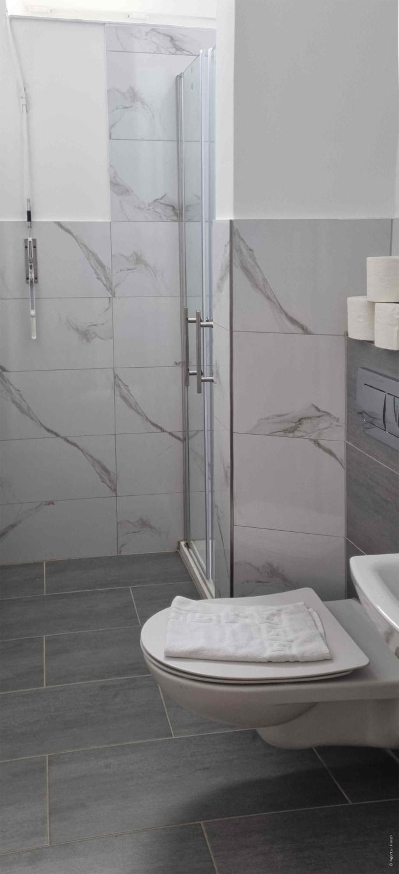 Bad/Dusche recht eng - aber zweckmäßig.