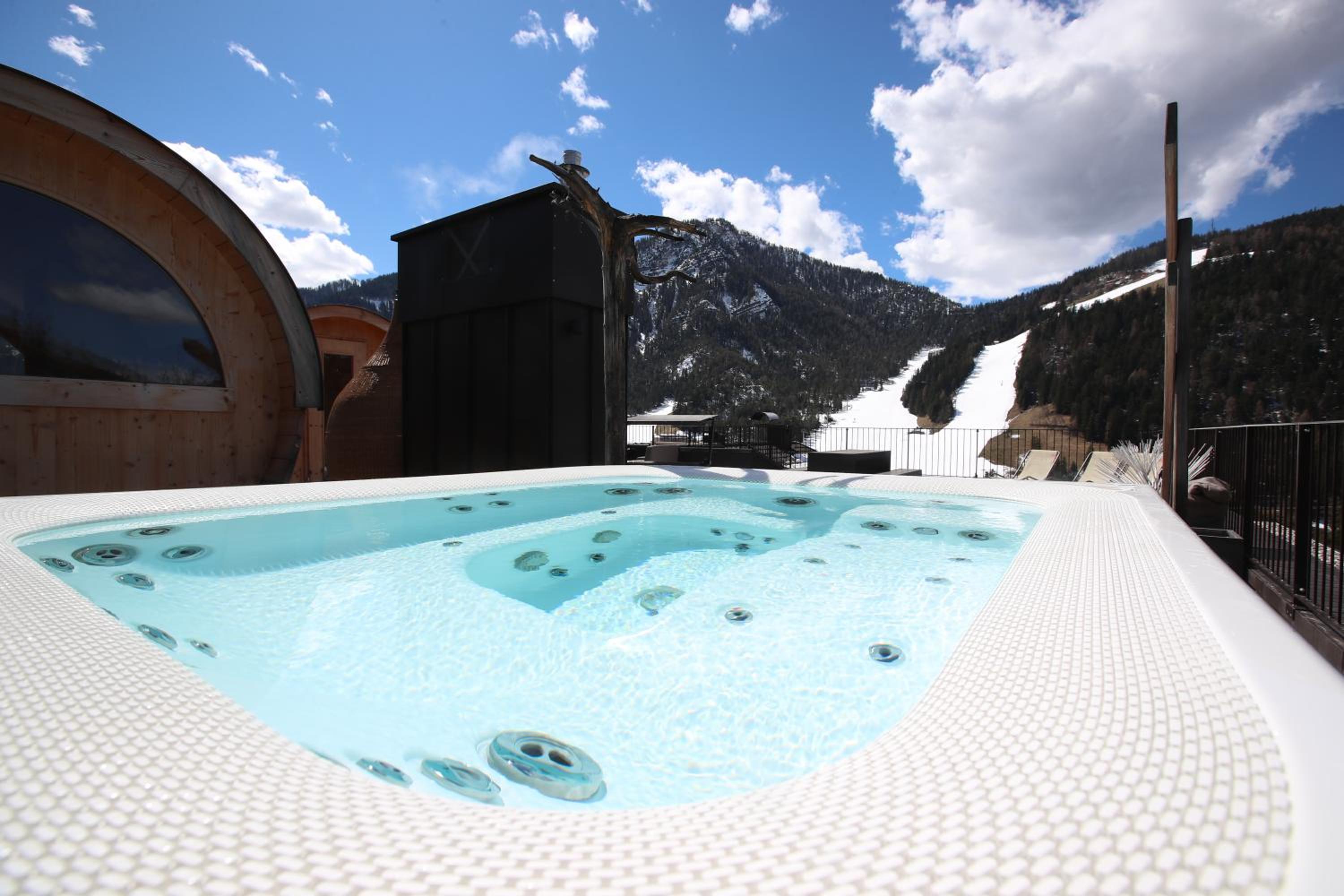 Indulge in the hotel's luxurious wellness centre featuring whirlpools, steam baths, and various saunas, perfect for rejuvenating after a day of outdoor activities.