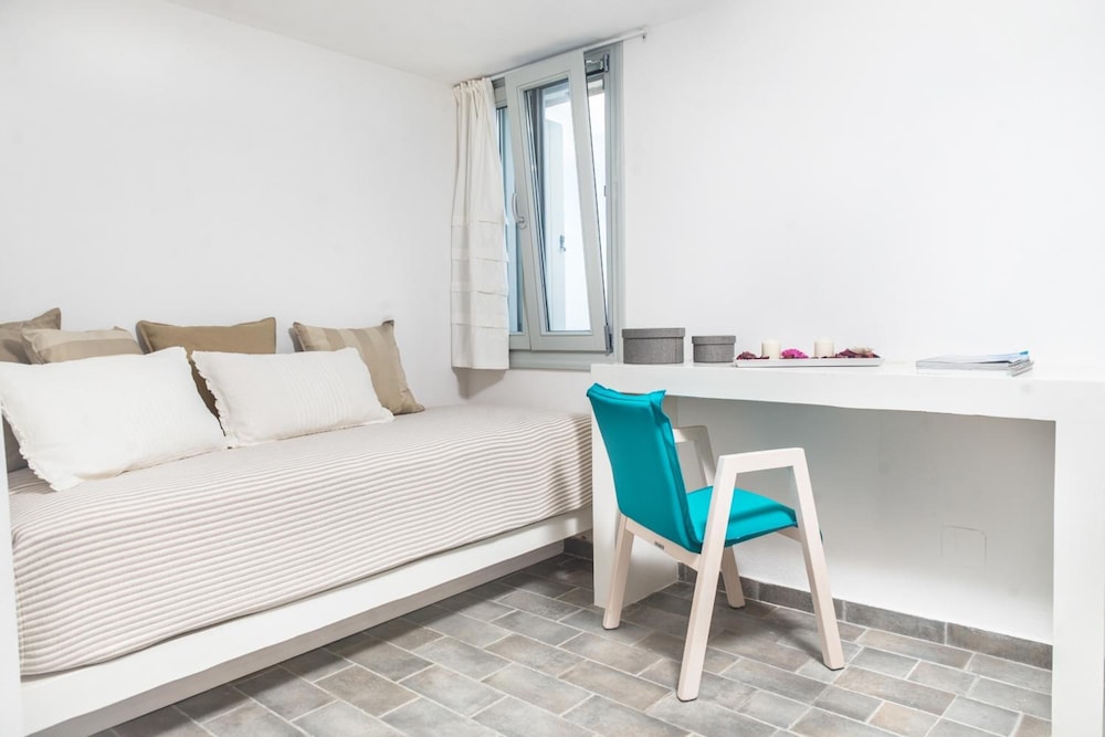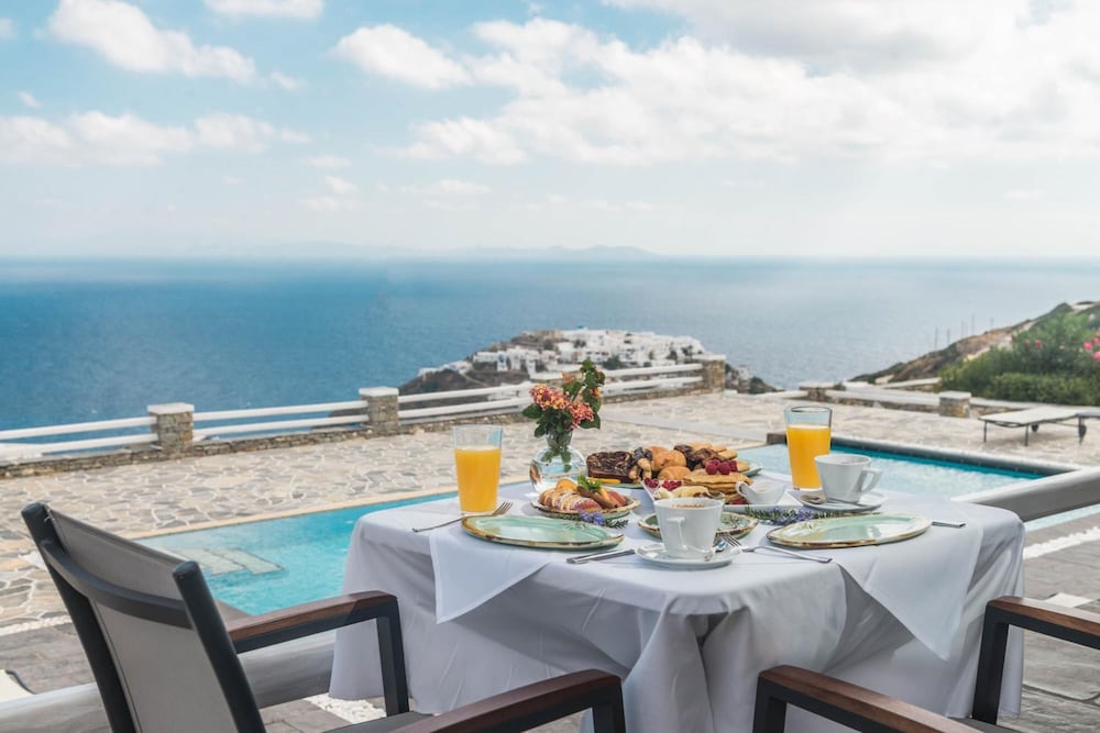Couldn’t rate it more highly - absolutely nothing to improve. and It really feels like a boutique as it’s only 12 rooms nestled in the hill crest between Apolonia and Kastro. Stunning views, beautifully kept hotel and pool/ restaurant- just every detail was designed to be charming, relaxing, and high quality- from the beds to the bathrooms to the pool and poolside lounge areas. Rooms were beautiful with nice soft lighting and great a/c, private balconies all designed to be very private. Amazing pool kept impecably clean- after a days exploring we raced home to watch the sunsets over Kastro and the moon rise over the lounge from comfy deck furniture with a drink in hand. Another amazing feature was the staff- they were so helpful and kind, and made us really feel welcome- Picked us up at the airport, sent tips ahead and during our stay, even picked us up when they saw us walking back from town :) as for the food- Amazing breakfast spread and fresh eggs made to order and honestly the restaurant ( only for residents) was some of the best food we had on the island (on par with Ágylos, pelícanos, and cantina) and reasonable prices for the quality.