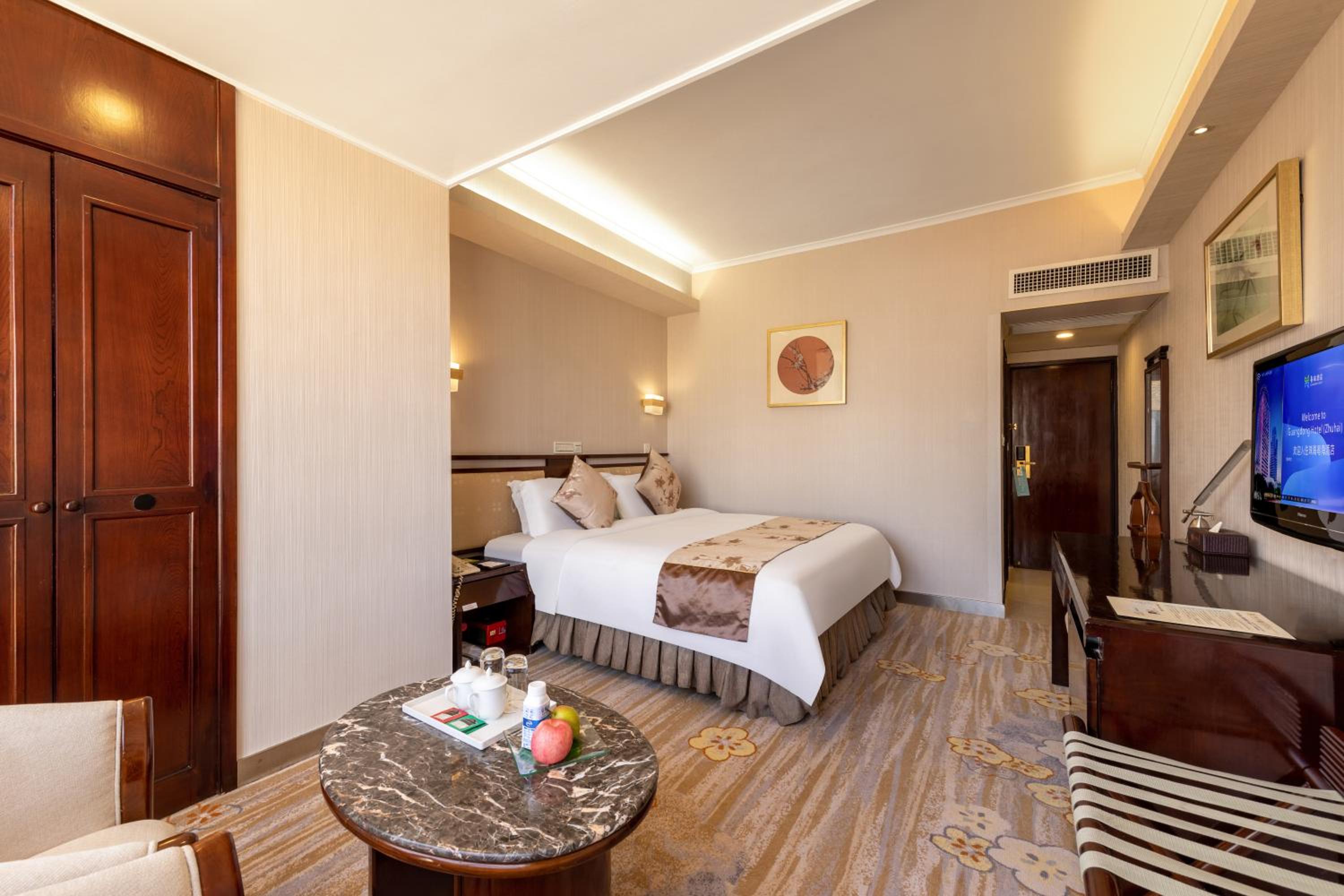 The Guang Dong Hotel Zhuhai offers a luxurious stay in downtown Zhuhai with complimentary Wi-Fi. Guests can easily explore the vibrant Lianhua Road Pedestrian Street and enjoy stunning sea views on Qinglv Road.