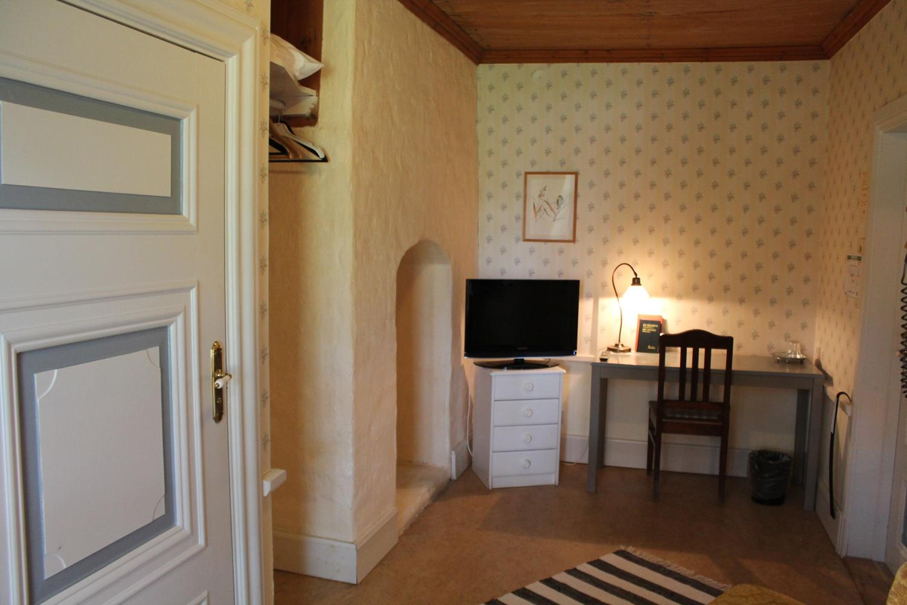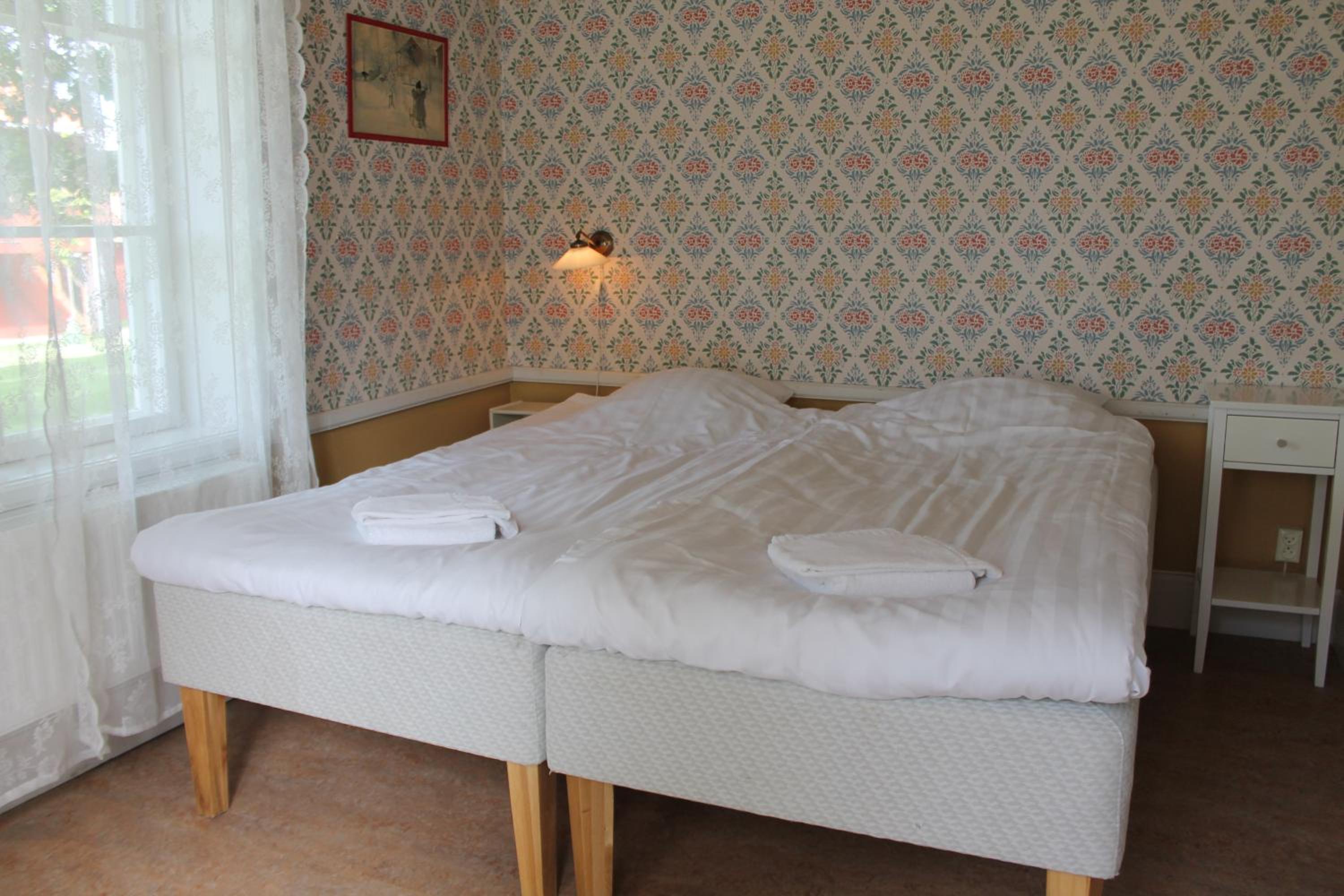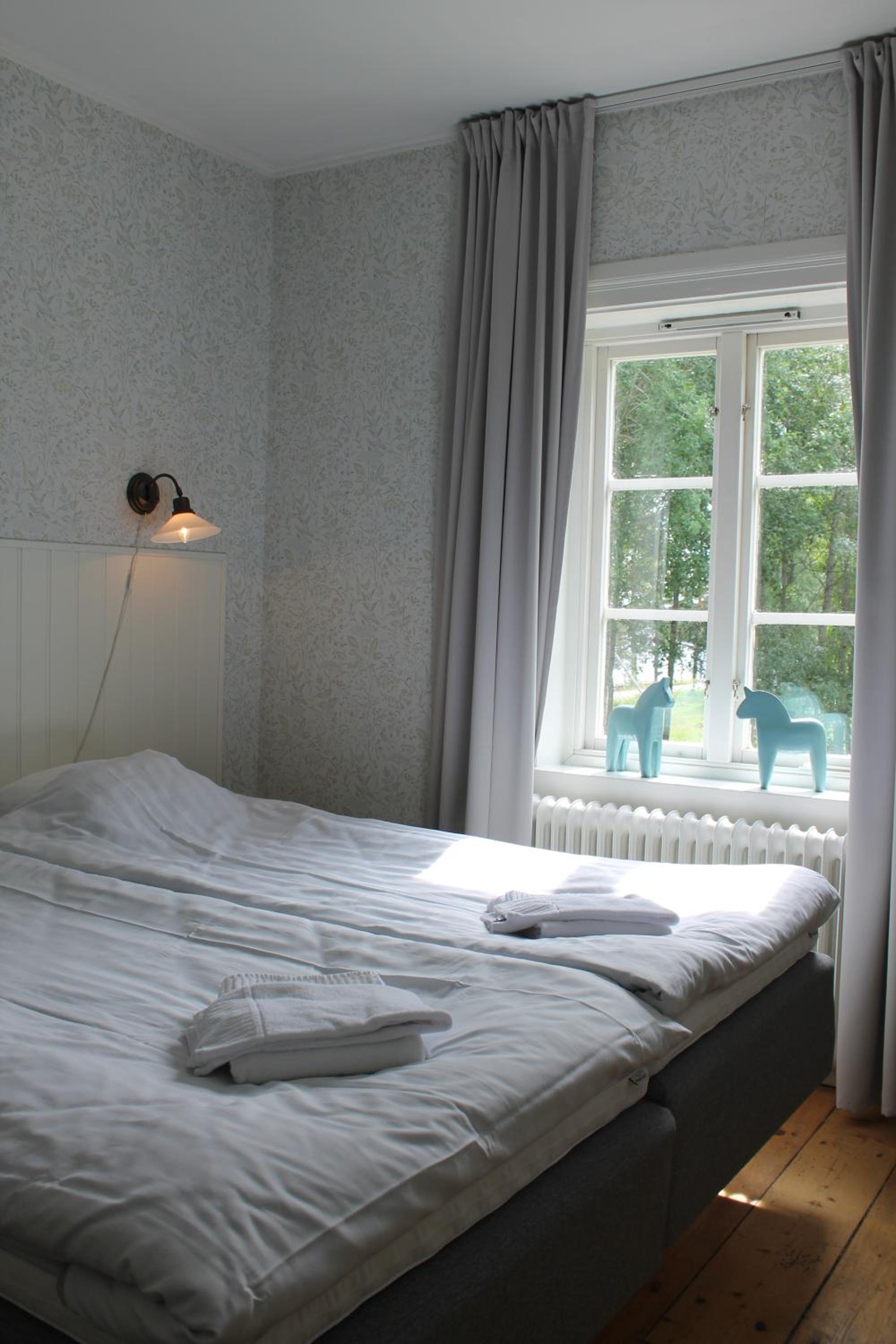 Fin herrgård med bra läge för vår släktträff. + för mysiga rum, atmosfär och bra frukost. - för att restaurang och bar inte var öppet och bara tre tv-kanaler.