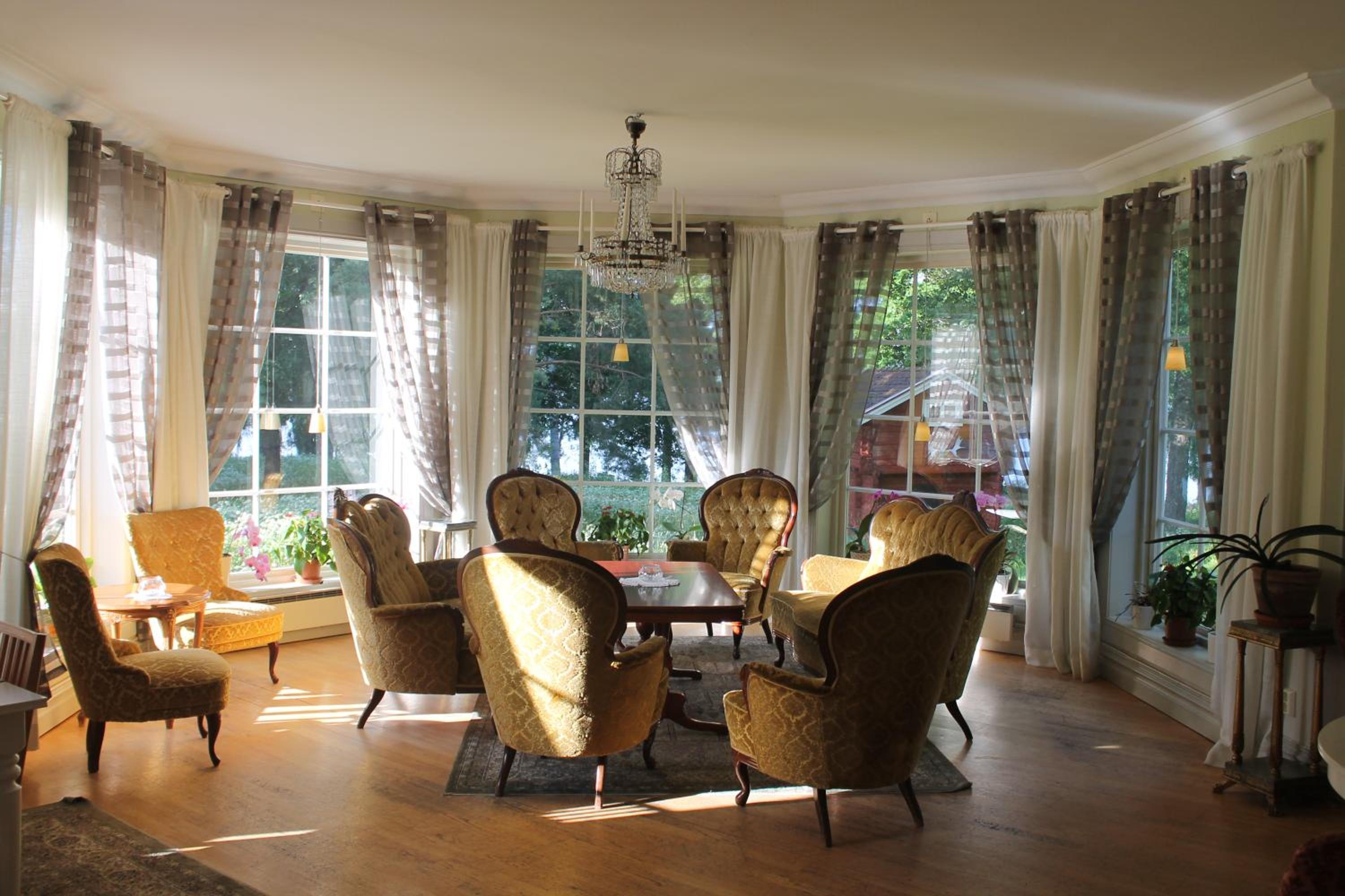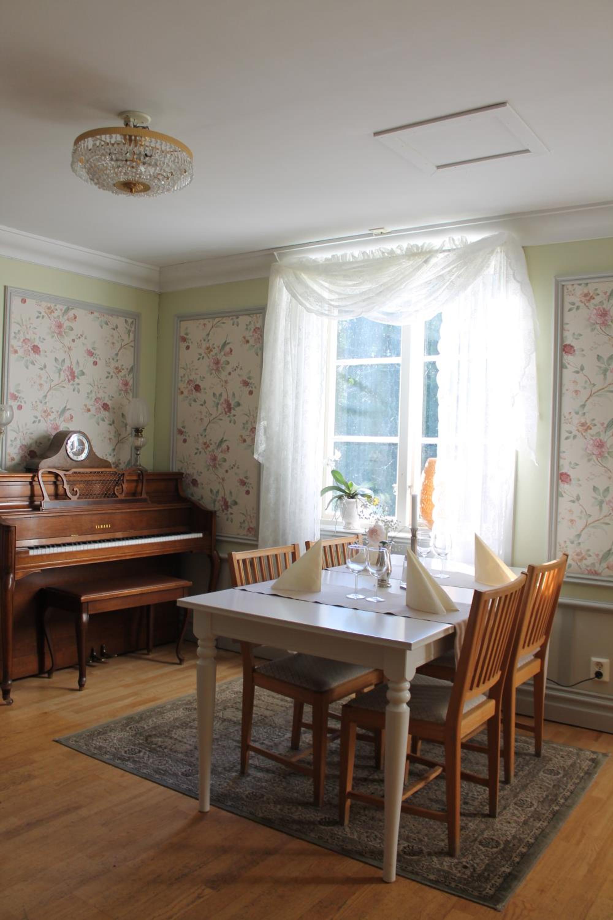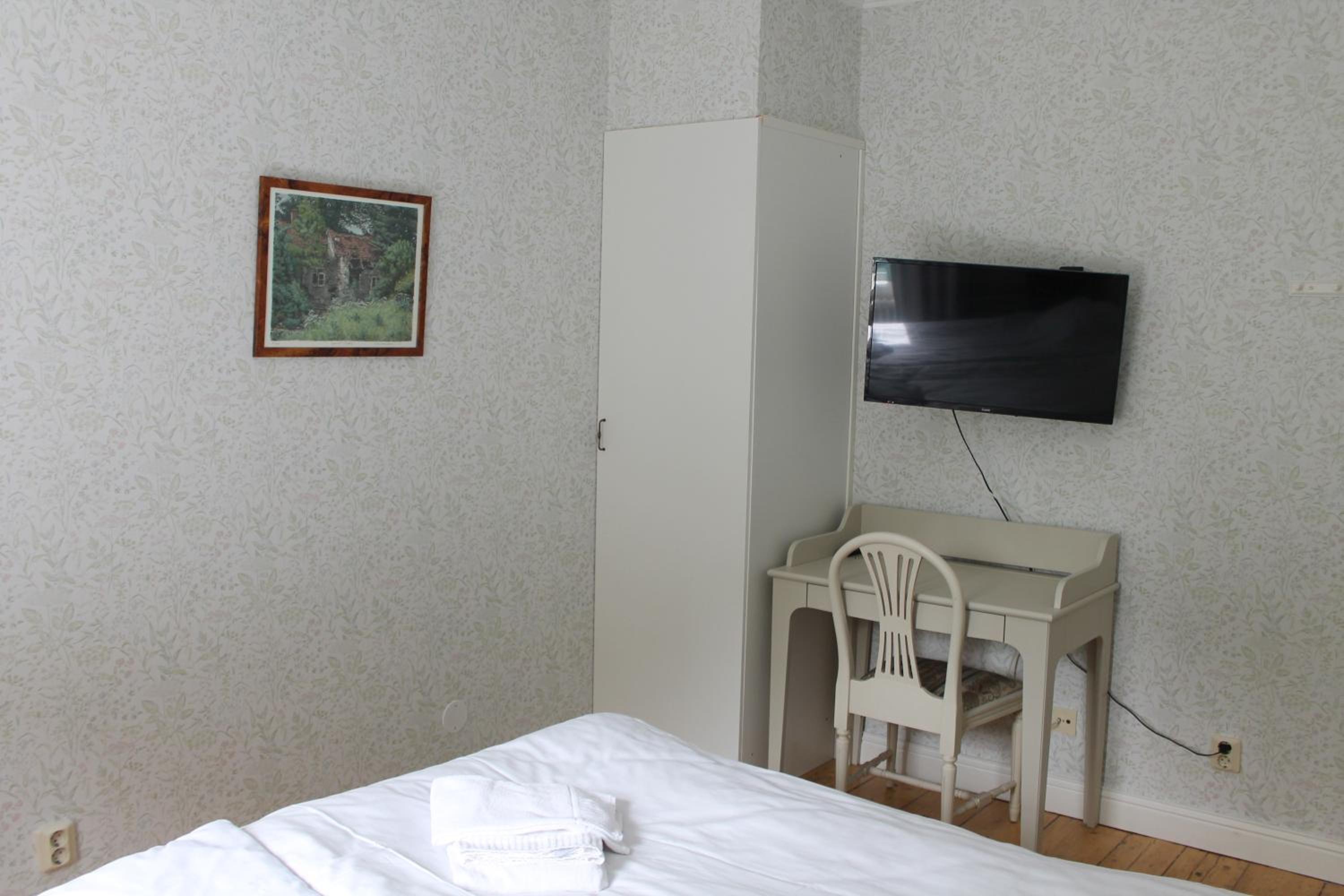 Fin herrgård med bra läge för vår släktträff. + för mysiga rum, atmosfär och bra frukost. - för att restaurang och bar inte var öppet och bara tre tv-kanaler.