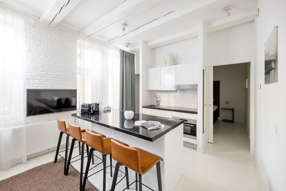 Beautiful spacious apartments on a canal, walkable to most attractions and right on the end of the tram line. Nice kitchens, in room laundry/dryer, super clean place.