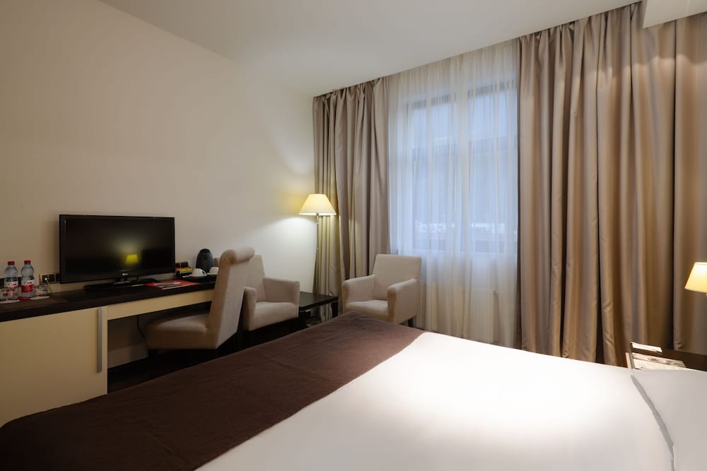 Теперь минусы: звукоизоляции нет совсем – слышно, как соседи переговариваются, даже если шёпотом. По вечерам окно не открыть из-за жуткой вони от соседнего здания (там трубы какие-то, из которых вечером вонючий белый дым идёт), поэтому душно. Под окнами бар, который раз в несколько дней устраивает мероприятия с громкой музыкой заполночь. Завтраки довольно скудные для сетевого отеля.