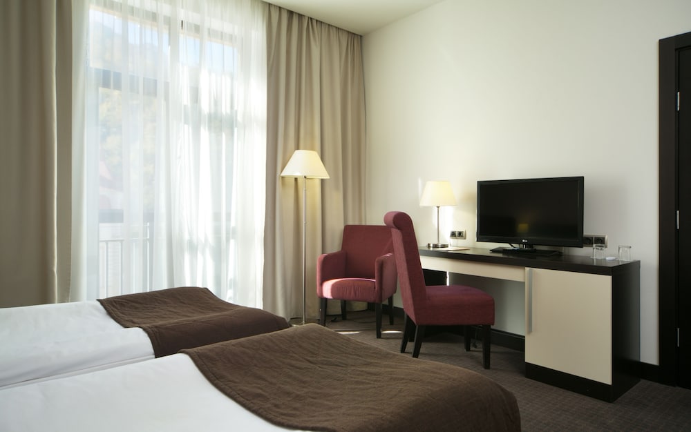 При заселении в номер, его чистота оставляла желать лучшего. В целом с первого взгляда чисто, но когда присматриваешься, то видишь, что ковер плохо пропылесосили, а пыль не везде вытерли. Почему-то в номере не оказалось пульта от телевизора. Очень плохой Wi-Fi. Хуже всего было то, что слышимость людей в соседних номерах была просто потрясающей в плохом смысле. так что мой вечер и сон был испорчен разборками пары за стеной, а в последствии храпом соседей, как будто они были со мной в одной комнате. Вряд ли стоило ждать большего за такую цену в сезон в Розе Хутор. Скорее всего, больше в этом отеле не остановлюсь.