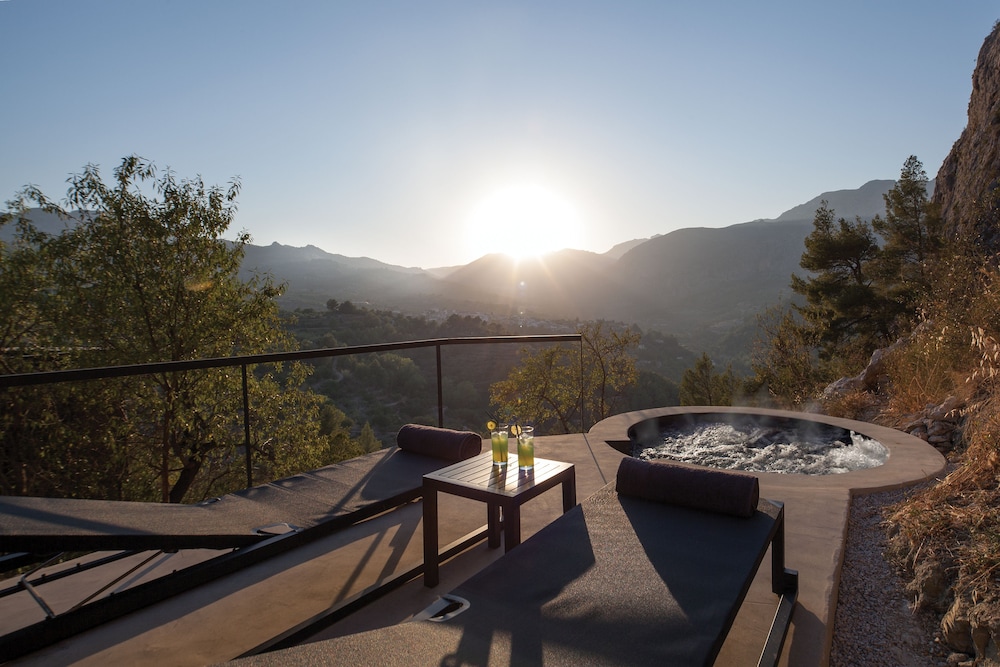 Vivood Landscape Hotel, located in the Guadalest Valley, Alicante, is a luxury hotel designed to offer a unique experience of relaxation and connection with nature. It is an eco-friendly hotel integrated into the landscape, situated in a prime location within a mountainous setting with spectacular views of the valley and the Guadalest reservoir.